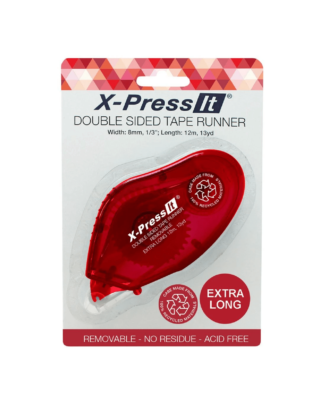X-Press It Removable Tape Runner is the ideal tool for craft, school, home and office. It is easy to use, glides effortlessly across the page, and can be removed with no residue. The applicator sits comfortably in the hand and has a cover that protects the tape and keeps it clean between uses.