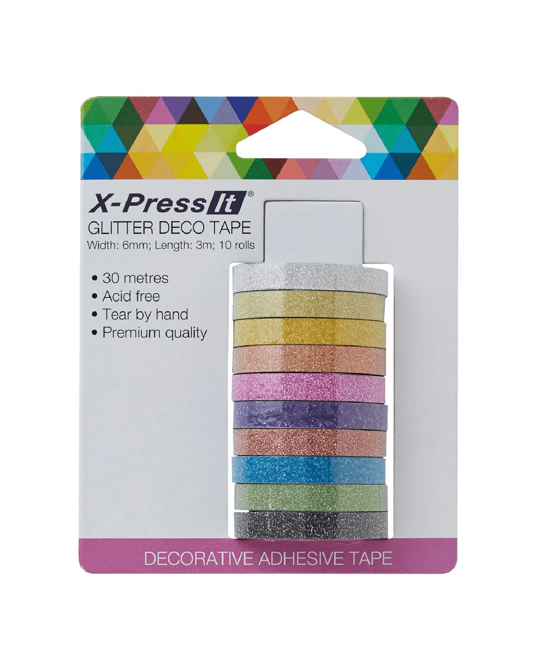 This X-Press It Glitter Tape is the ideal way to add some sparkle to your art and craft projects. Each pack contains an assortment of glitter colours which you can use in a variety of gift wrapping, decorating or craft applications.