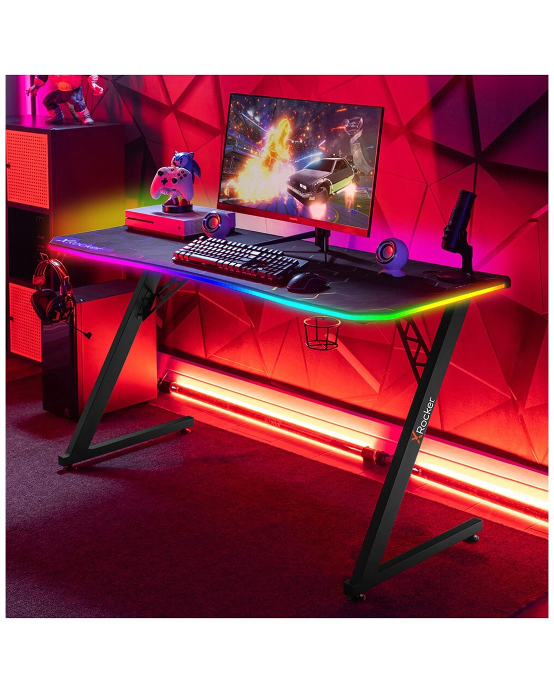 - FULL SIZE MOUSE PAD INCLUDED: Each X Rocker Pulsar gaming desk comes with a FREE desk-scale X Rocker XL mouse mat with smooth glide fibre material and unique RGB printed design.