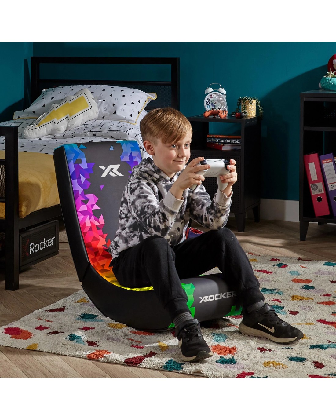 - JUST UNFOLD AND PLAY! - This gaming floor rocker for kids is easy to assemble. Simply unfold the chair and you're ready to play! And when the game is over, just fold down for storage to save space.