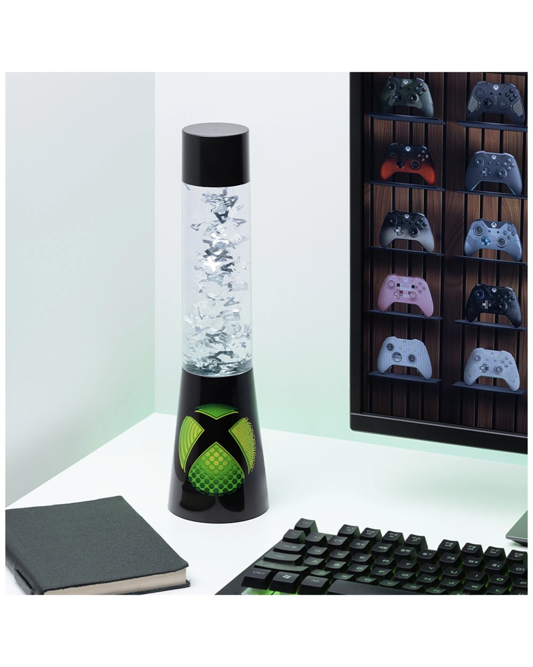 The Xbox ABXY Icons USB/Battery Illuminated Flow Lamp Green is designed for fans of gaming and stylish room decor. This eye-catching lamp features iconic Xbox controller symbols that float around, creating a captivating visual display while casting a vibrant green glow across your space.