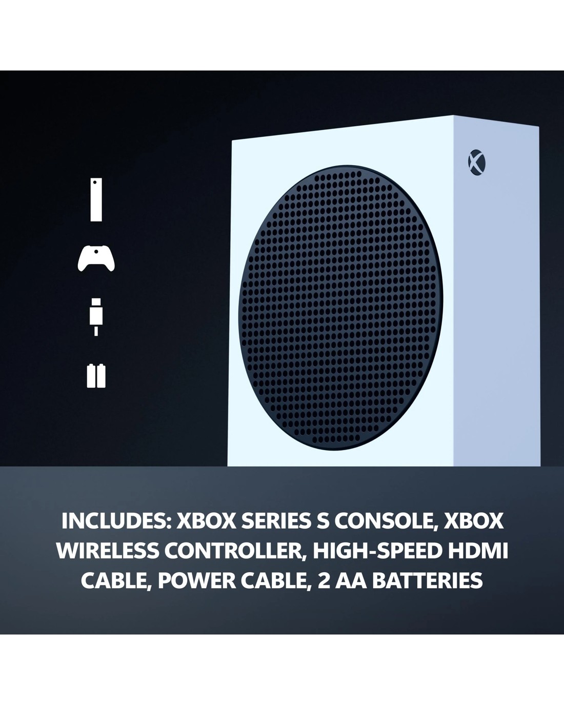 - Bundle includes: Xbox Series S console, one Xbox Wireless Controller, a high speed HDMI cable, power cable, and 2 AA batteries