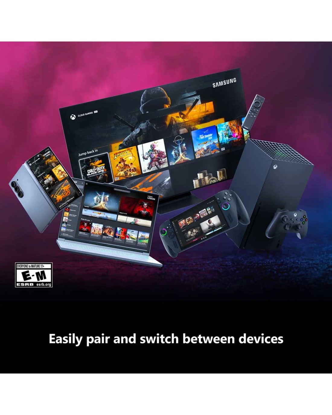 Show off your game Hold nothing back with the Breaker special edition series. Heart Breaker peacocks the hardest with vibrant pinks, purples, and touches of bright blues. Stay elegantly on target with textured triggers. Hold on to the action with rubberized grips on the back cases. Quickly pair with, play on, and switch between devices including console, PC, and cloud.* Windows 10/11: Requires Bluetooth, compatible USB-C cable, or Xbox Wireless adapter. Each sold separately. Android, iOS, and Bluetooth: Select devices and versions. Some functionality not supported. Software download may be required via Windows PC or console. See xbox.com/controller-compatibility. Use with controller-compatible games. See xbox.com/controller-compatibility. Use with controller-compatible games. Battery life varies significantly with headsets, additional accessories, usage, and other factors. Testing conducted by Microsoft using standard AA batteries in preproduction units. Button mapping available via Xbox Accessories app for Xbox Series X|S, Xbox One, and Windows 10/11; app for Windows 10/11 requires compatible USB-C cable (sold separately). Requires Xbox Game Pass Ultimate (sold separately) and Xbox App, Xbox Cloud Gaming app and supported controller (sold separately) or Xbox.com/play access. Third party device shown. Game(s) shown coming soon, catalog varies by region and plan. See Xbox.com for details. Xbox Cloud Gaming (Beta) requires Game Pass Ultimate subscription and supported device (both sold separately). Cloud playable games not included with Game Pass Ultimate are sold separately, and may be made available with Game Pass Ultimate in the future. Game catalog varies. Stream on supported devices and Smart TVs with the Xbox app. Select regions (xbox.com/regions) and devices at xbox.com/cloud-devices. See cloud gaming catalog (xbox.com/play).