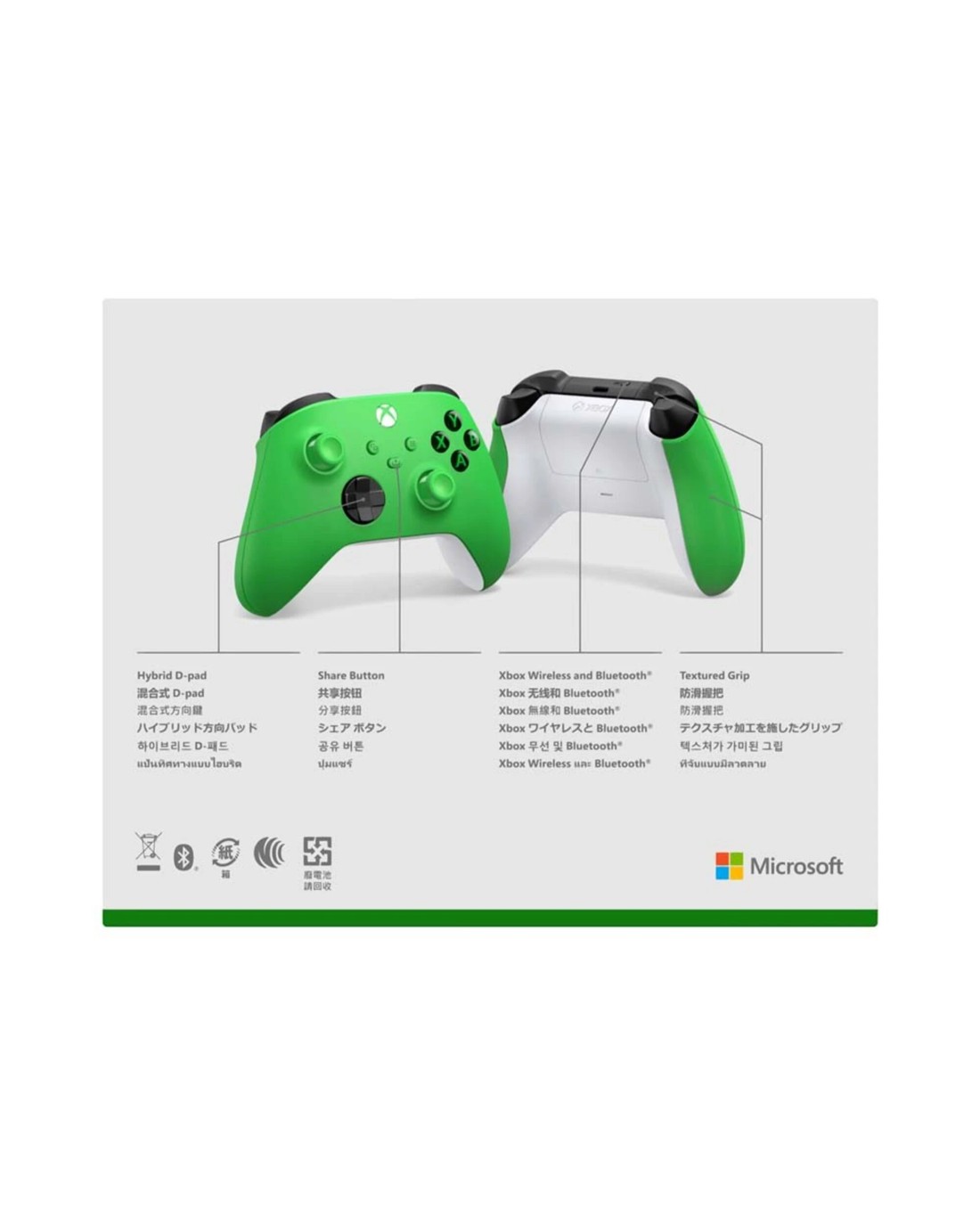 Experience the modernized design of the Xbox Wireless Controller in Velocity Green, featuring sculpted surfaces and refined geometry for enhanced comfort during gameplay. Stay on target with a hybrid D-pad and textured grip on the triggers, bumpers, and back-case. Seamlessly capture and share content such as screenshots, recordings, and more with the Share button. Connect using the USB-C port for direct plug-and-play to console and PC. Support for AA batteries is included on the rear. Get up to 40 hours of battery life. Plug in any compatible headset with the 3.5mm audio jack. Use the Xbox Accessories app to remap buttons and create custom controller profiles for your favourite games. Quickly pair with, play on, and switch between devices including Xbox Series X|S, Xbox One, Windows PCs, and Android and iOS phones and tablets.*Features: