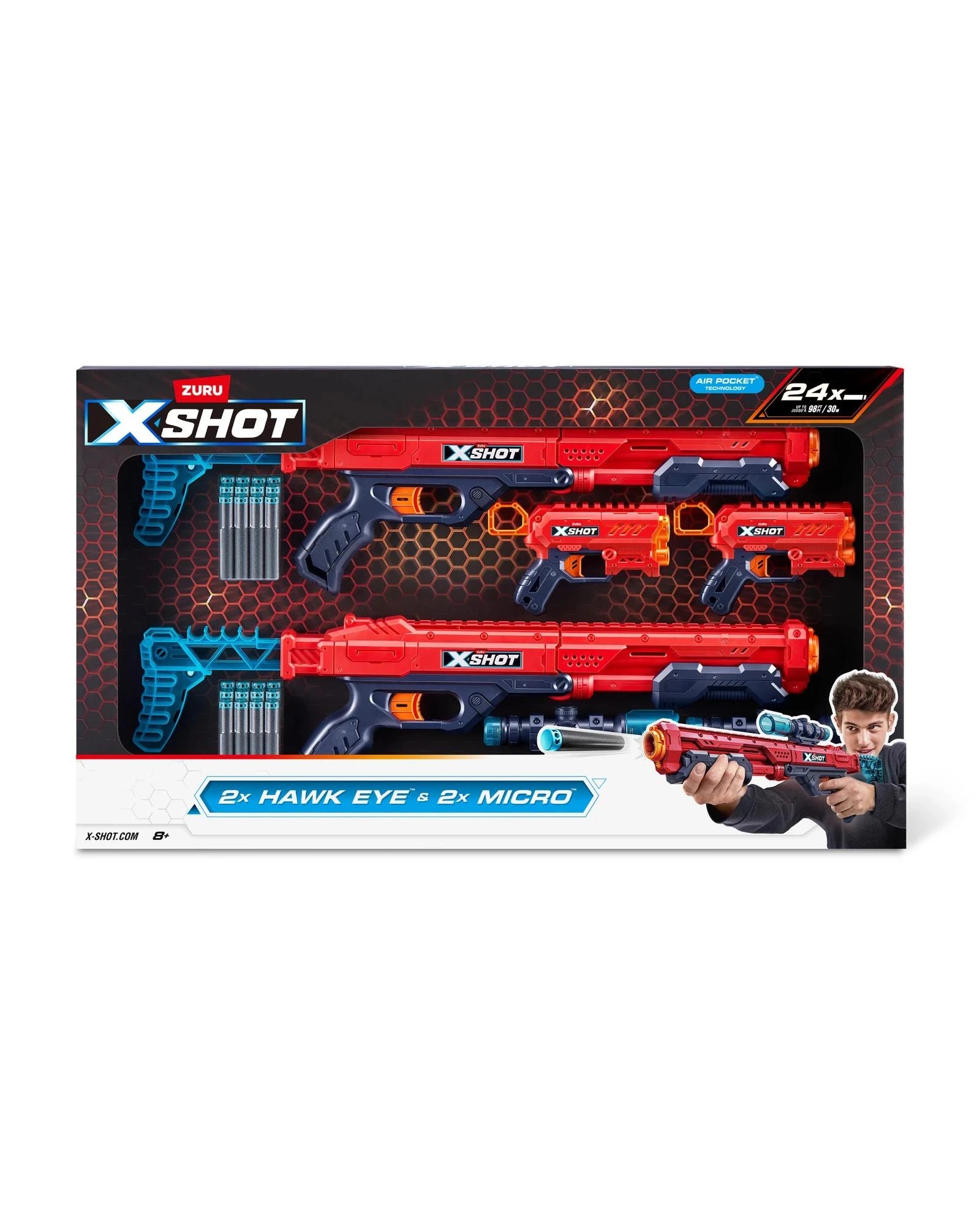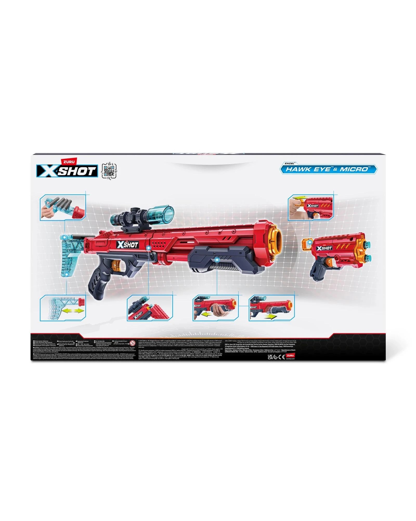 XSHOT Excel Double Hawk Eye Blaster Double Micro Blaster Combo Pack (24 Darts) by ZURU - Red