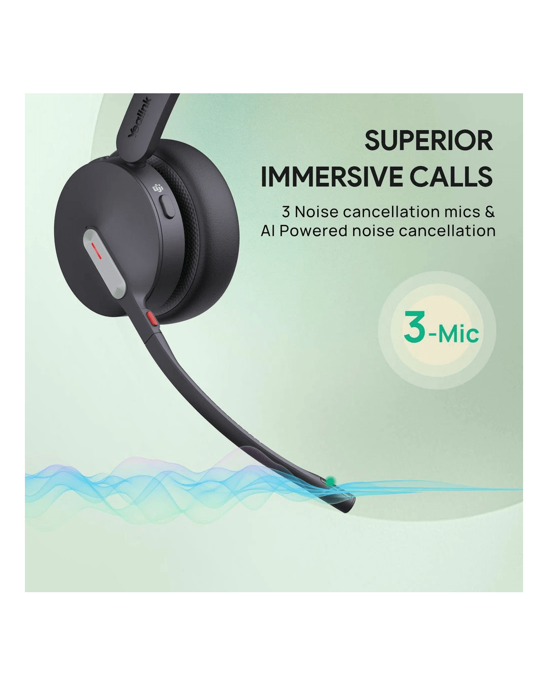 The Yealink BH70 is the perfect companion for communication. It features Yealinkâs 2nd-generation AI-powered microphone noise cancellation with three intelligent mics, ensuring crystal-clear calls even in noisy surroundings.