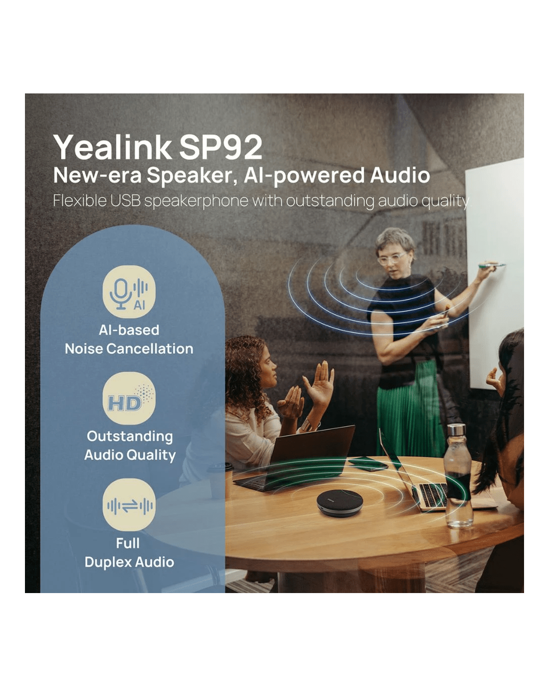 This Yealink SP92 Speakerphone is designed for clear, portable audio in meetings, calls and collaborative workspaces. It features AI noise cancellation, full duplex audio and a 50 mm speaker for brilliant sound quality. Plus, with up to 20 hours of battery life and a 4 m voice pickup range, it’s built for all-day productivity.