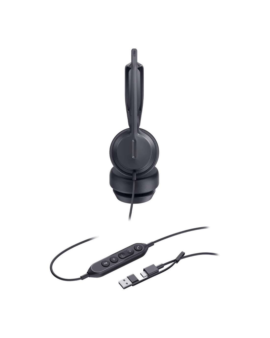 - The headset includes dual ear-cups for immersive sound and focused communication.