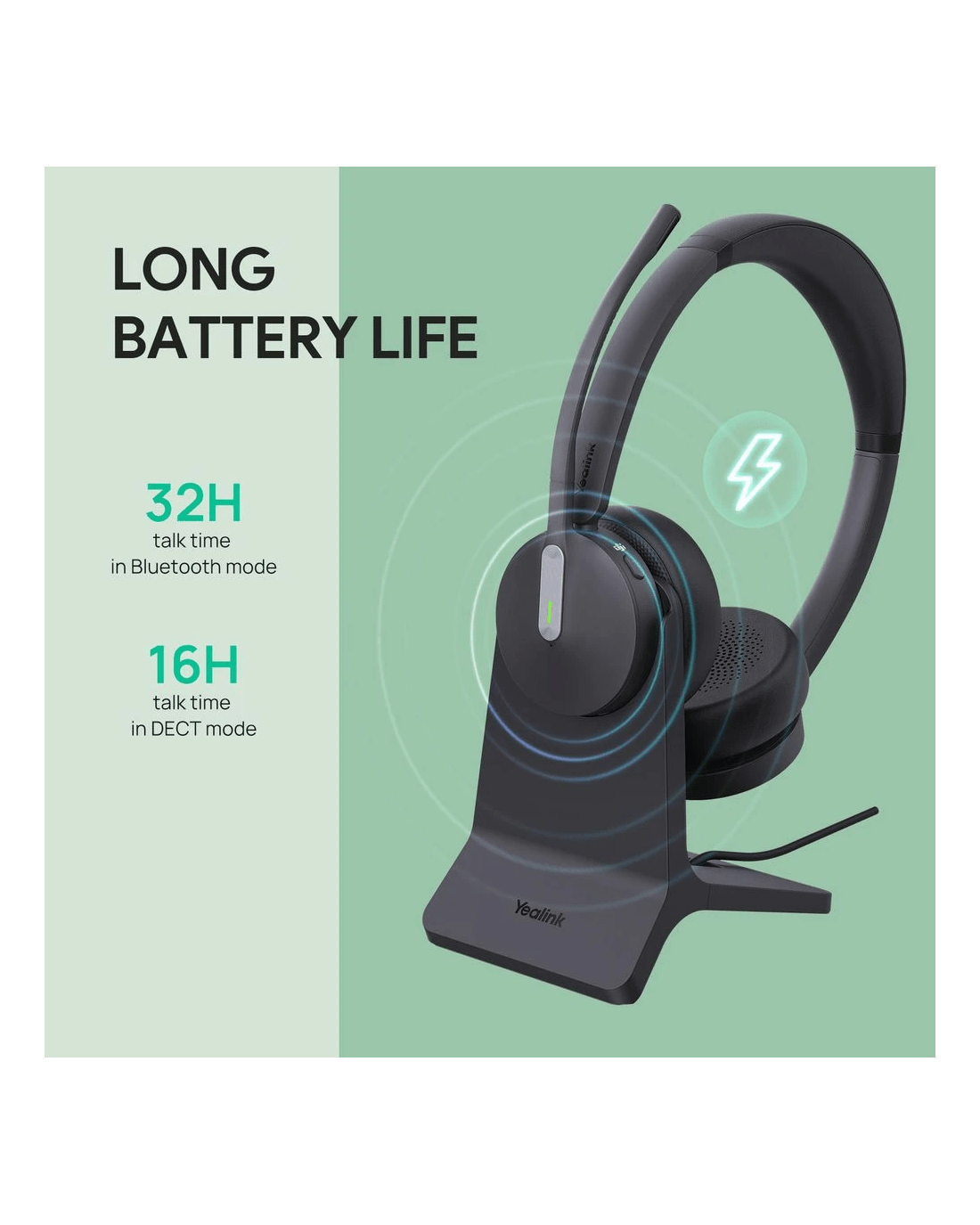 Sold by OfficeworksYealink WH64 Hybrid Dual DECT Technology BT On-Ear Headset