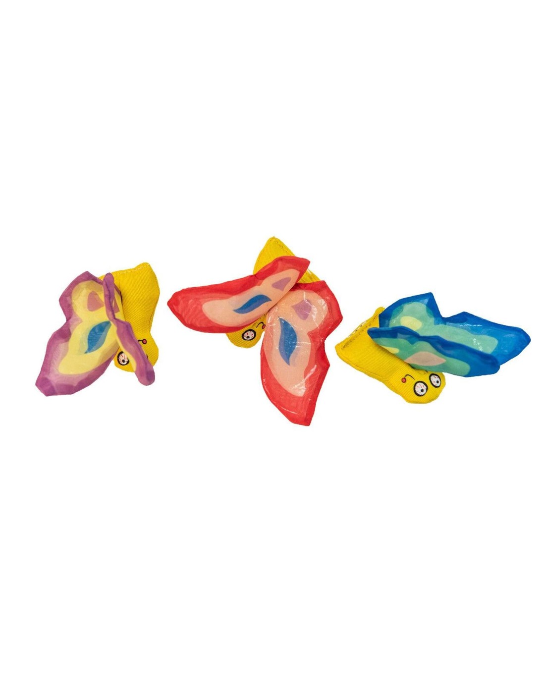 Bright colors, crinkly wings, and 100% stuffed with pungent, organically grown catnip makes this the perfect toy for your cat to pounce and play with!
