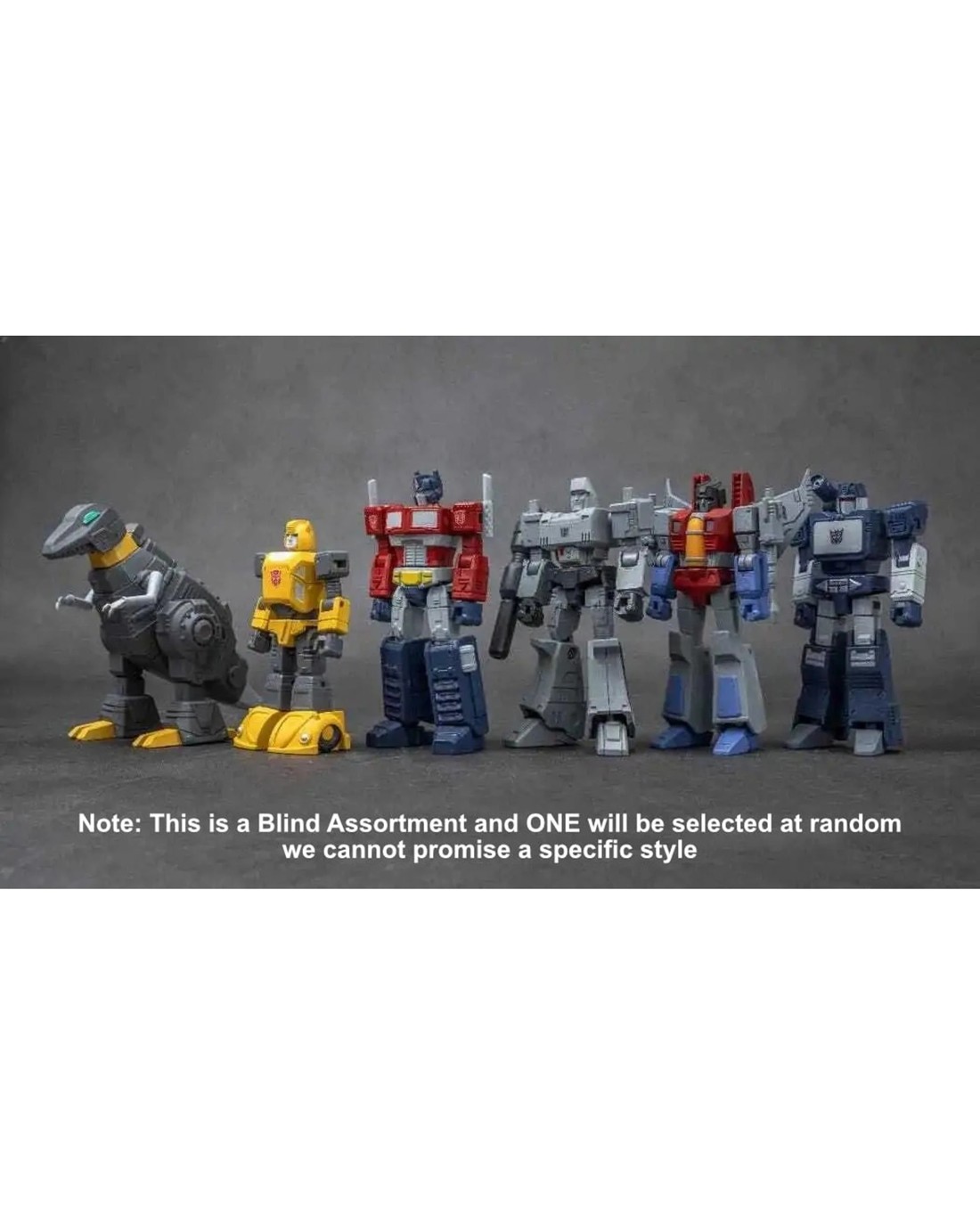 Discover the ultimate collection for Transformers enthusiasts with our AMK Mini Series! Each box contains one of six iconic figures, meticulously crafted and standing approximately 10 to 12 cm tall. Unbox the thrill of surprise and add a new character to your collection with every purchase. Possible characters include: Grimlock Optimus Prime Starscream Bumblebee Soundwave Megatron Perfect for fans and collectors alike, these figures capture the essence of your favorite Transformers characters. Don't miss out on the chance to complete your collection with these high-quality, detailed figures. Which legendary Transformer will you reveal next? Ages 8 +Contents