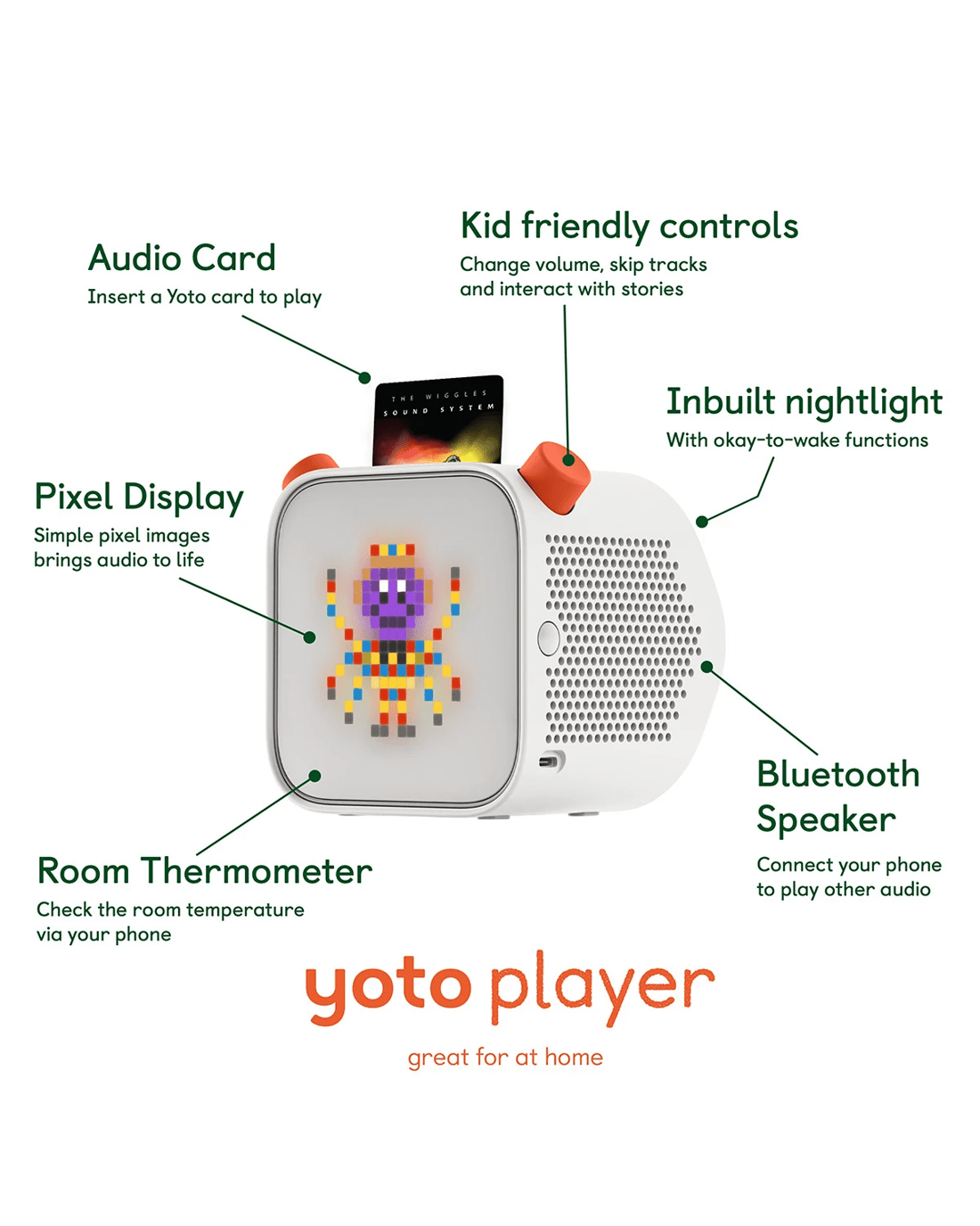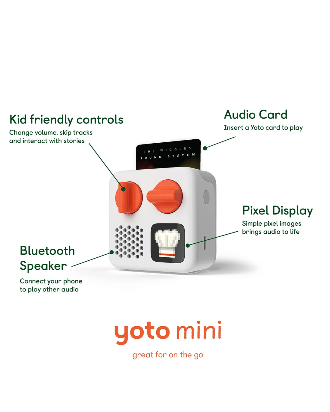 Yoto Says: Get ready to rave like there's no bedtime! The Wiggles Sound System re-mixes nostalgic hits with techno beats for a fun rave for all ages.