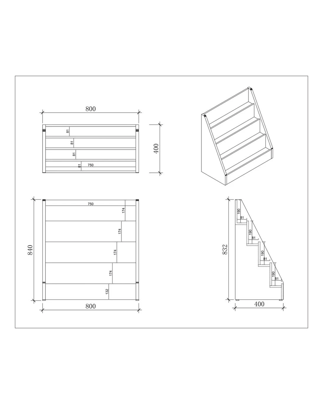 - Each shelf measures 750 W x 81 D x 190 H mm.