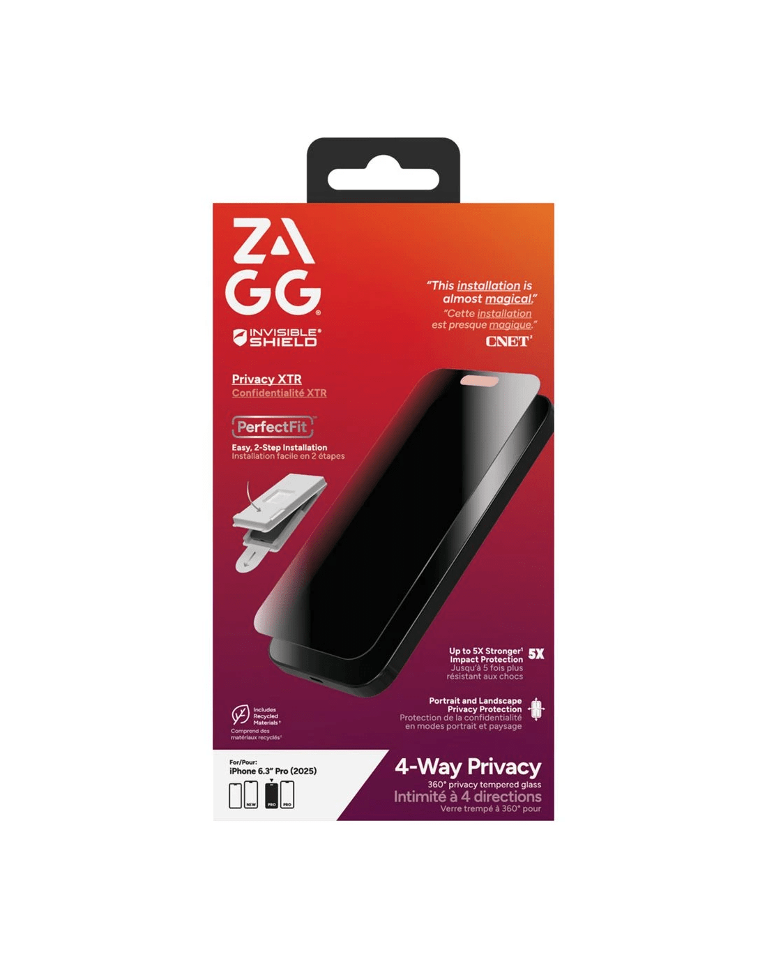 This ZAGG InvisibleShield Elite Privacy 360 Screen Protector is perfect for protecting your new iPhone. It's easy to apply and provides scratch protection, as well as bump, dust, shock and scratch resistance. Its four-way privacy filter prevents others from seeing your screen when viewed from above, below, or the side.