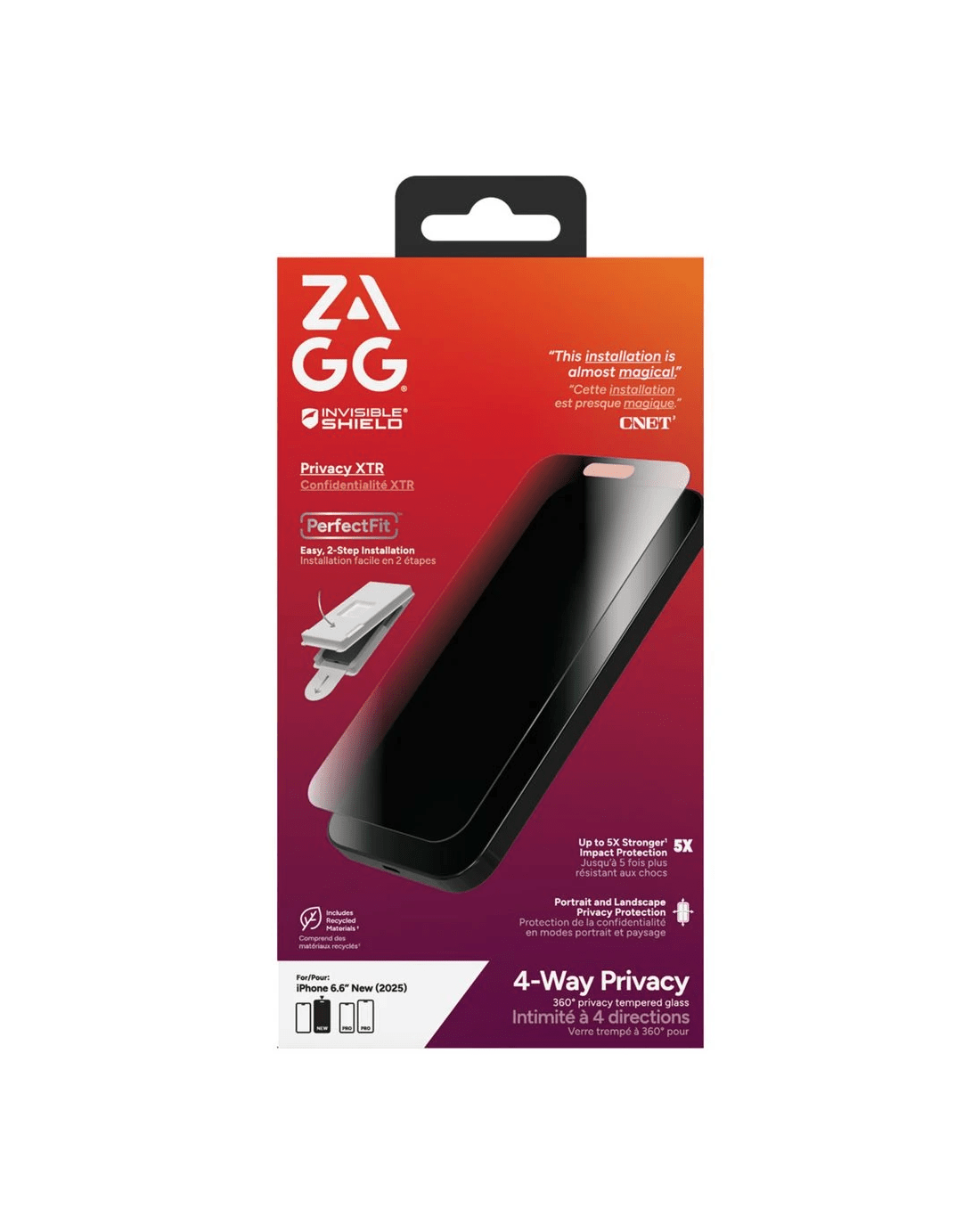 This ZAGG InvisibleShield Elite Privacy 360 Screen Protector is perfect for protecting your new iPhone. It's easy to apply and provides scratch protection, as well as bump, dust, shock and scratch resistance. Its four-way privacy filter prevents others from seeing your screen when viewed from above, below, or the side.
