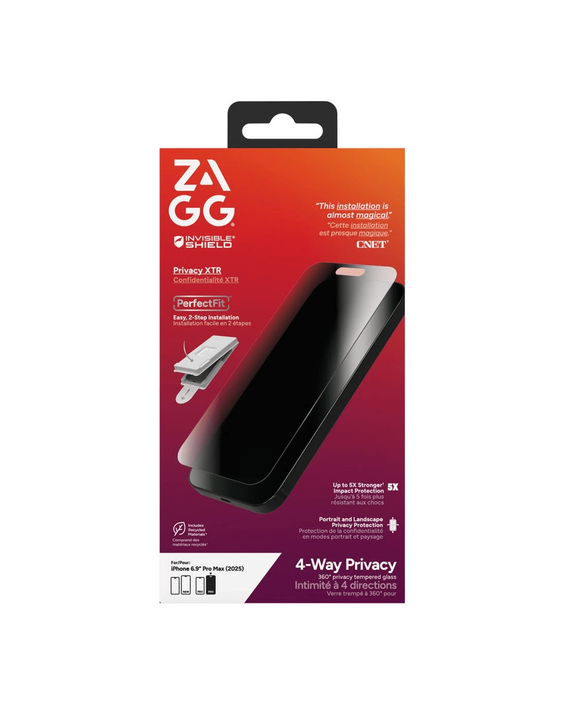 This ZAGG InvisibleShield Elite Privacy 360 Screen Protector is perfect for protecting your new iPhone. It's easy to apply and provides scratch protection, as well as bump, dust, shock and scratch resistance. Its four-way privacy filter prevents others from seeing your screen when viewed from above, below, or the side.