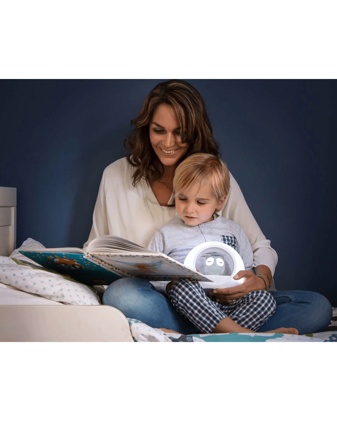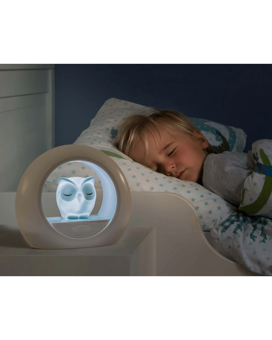 Lou has two lights, the Owl and Outer Ring. These lights have an adjustable brightness and both can be used separately.It also has a timer which allows you to set the nightlight to automatically switch off after a certain amount of time.