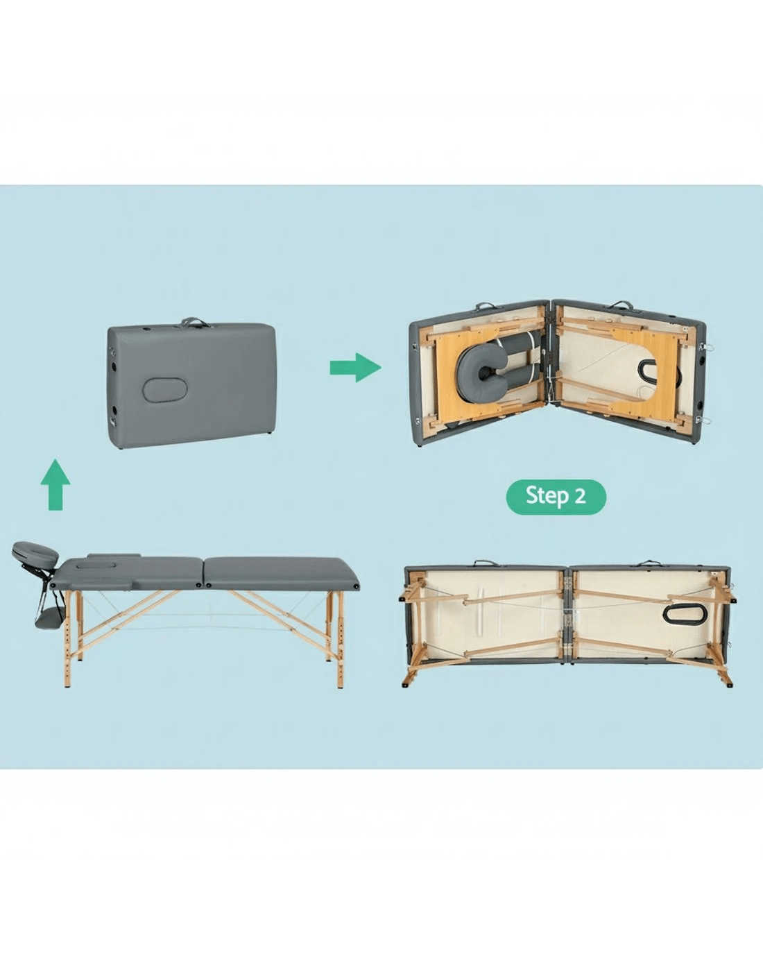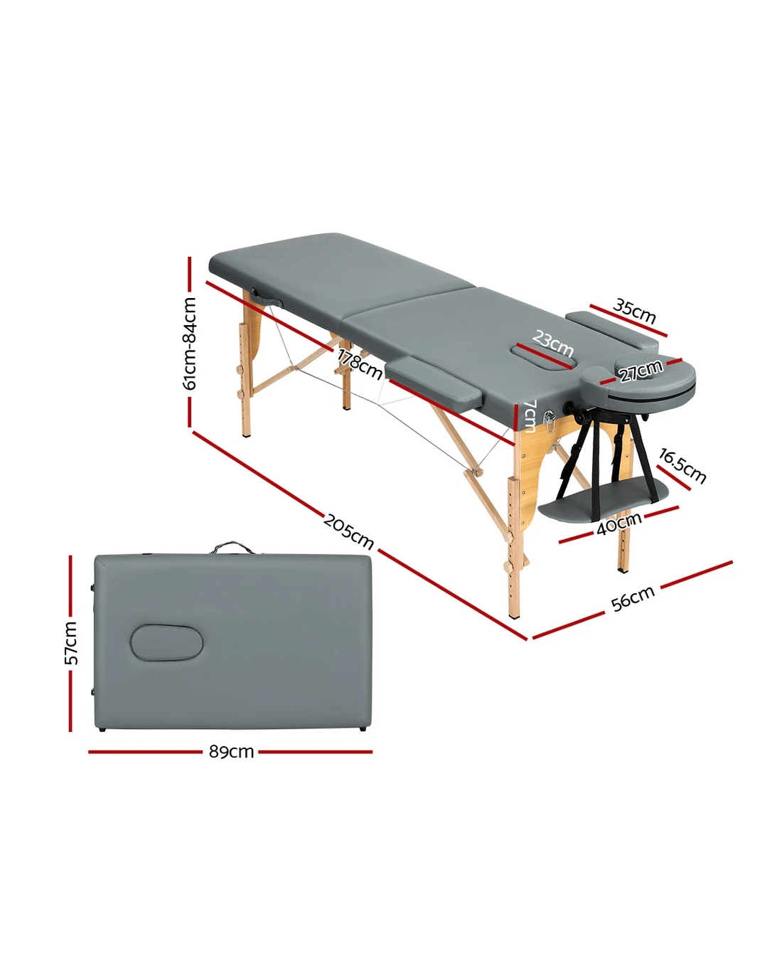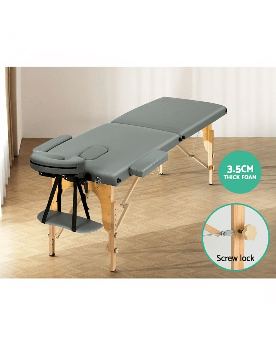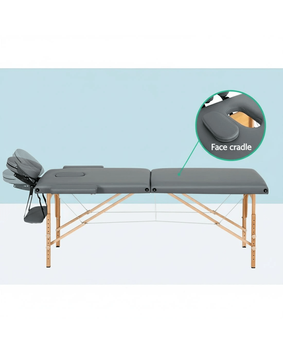Zenses Massage Table 56cm Portable 2 Fold Wooden Beauty Bed - Grey