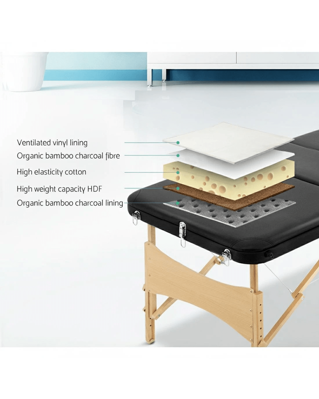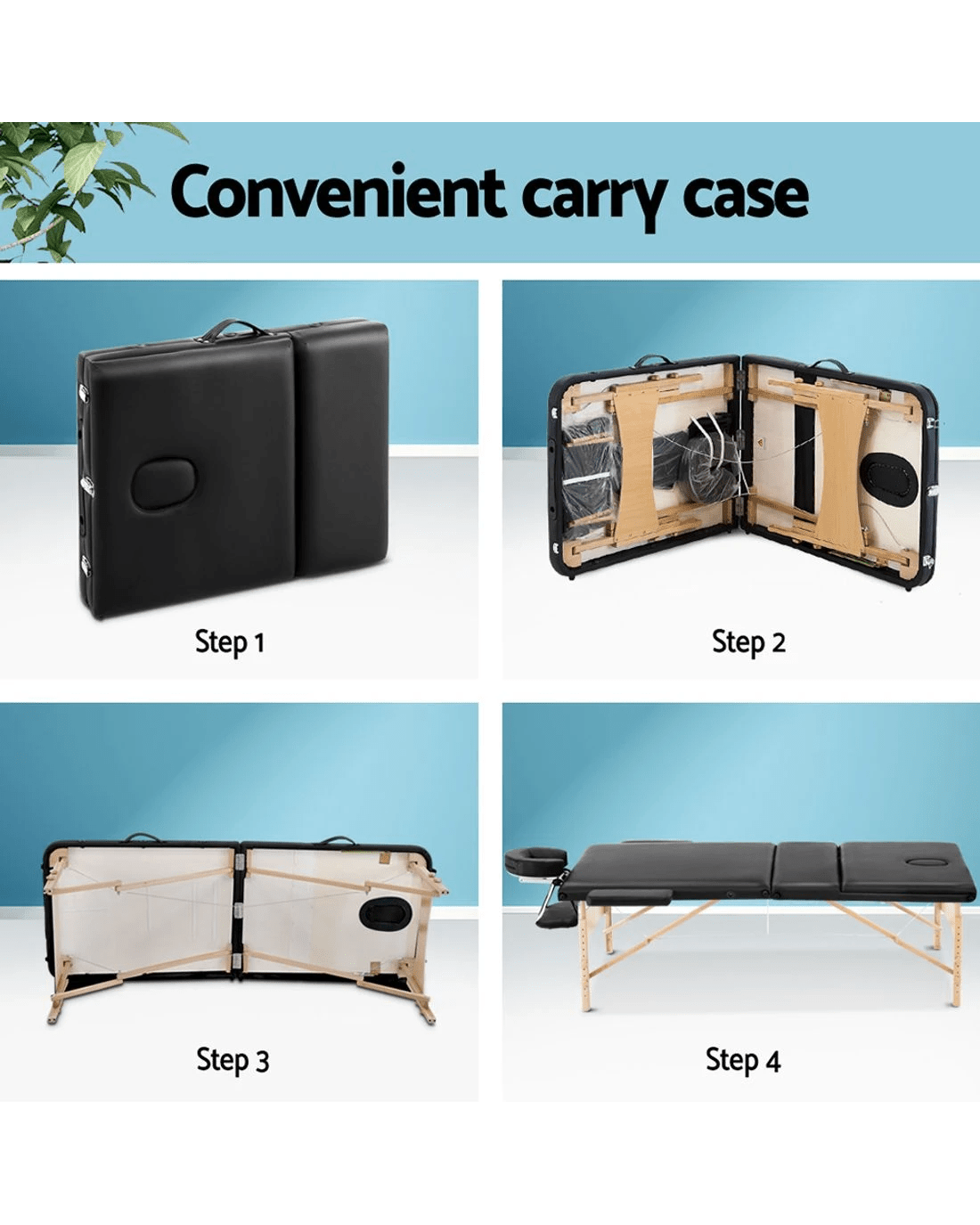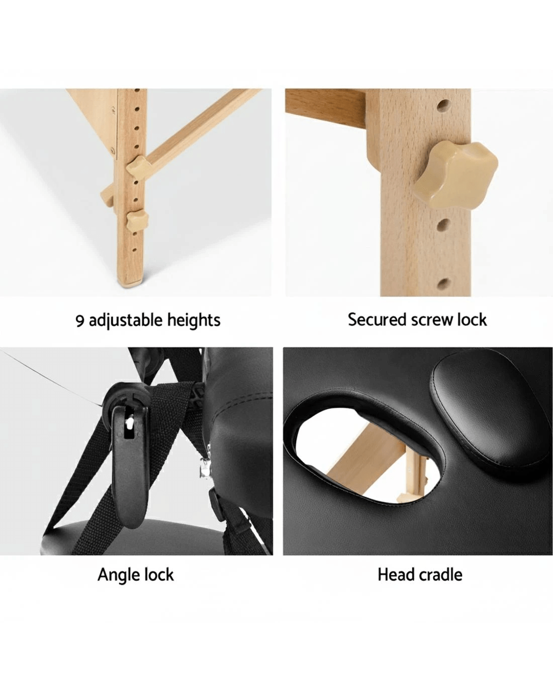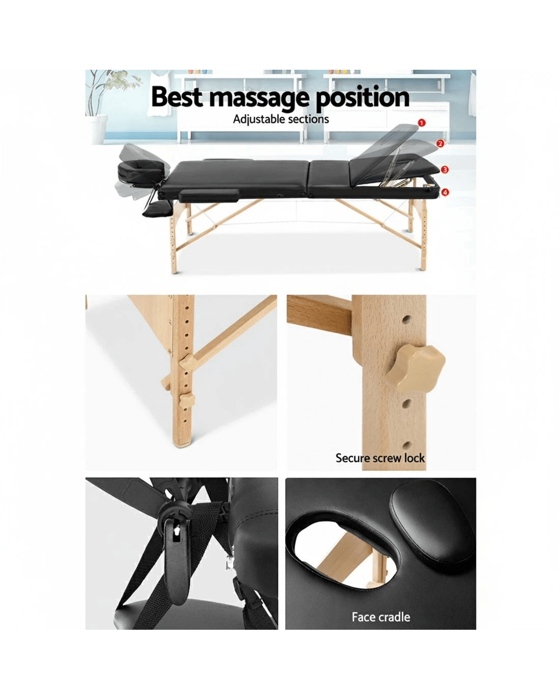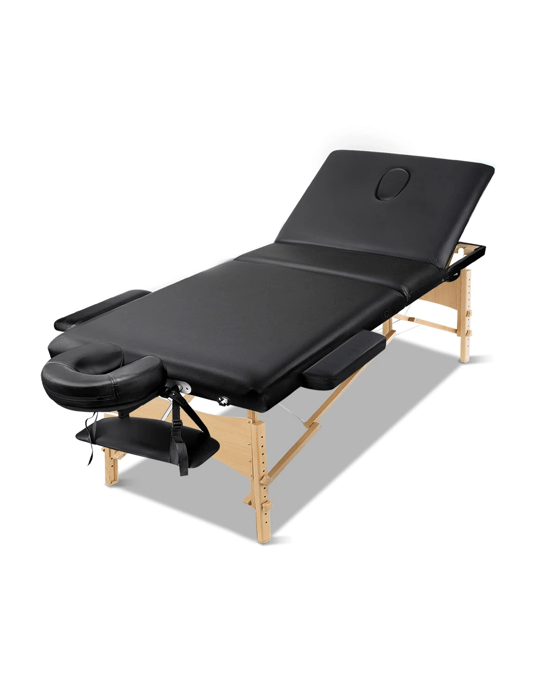 Sold by Aisle SixZenses Massage Table 60cm Portable 3 Fold Wooden Beauty Bed - Black