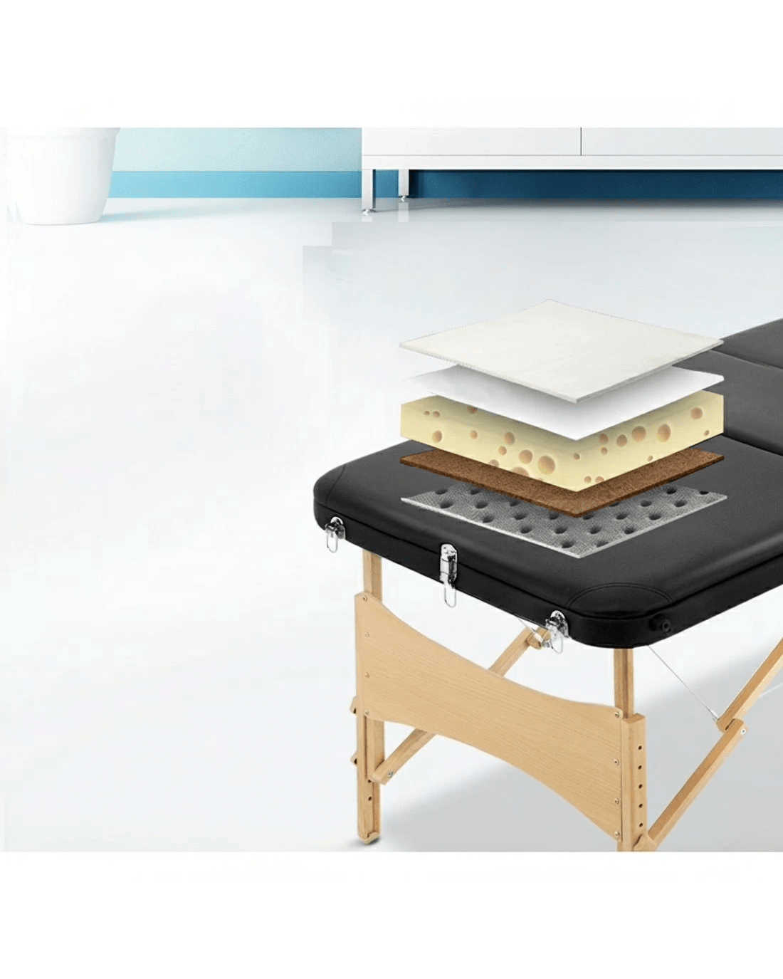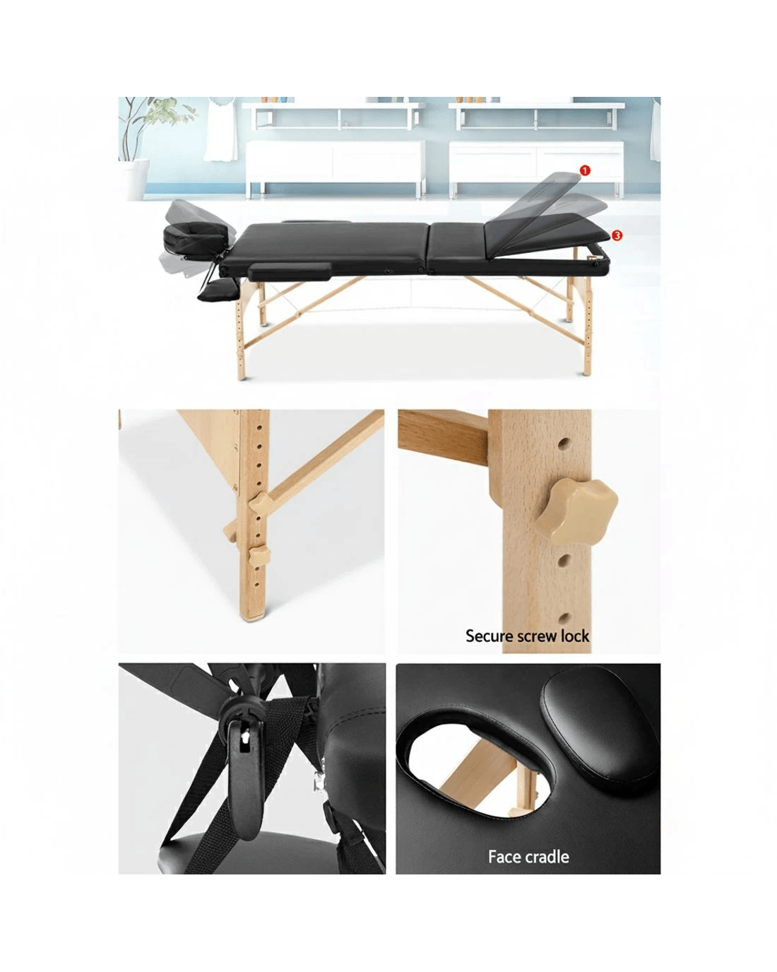 Sold by Aisle SixZenses Massage Table 70cm Portable 3 Fold Wooden Beauty Bed - Black