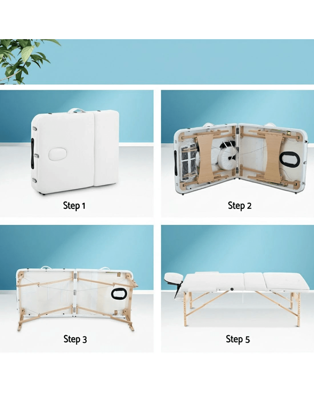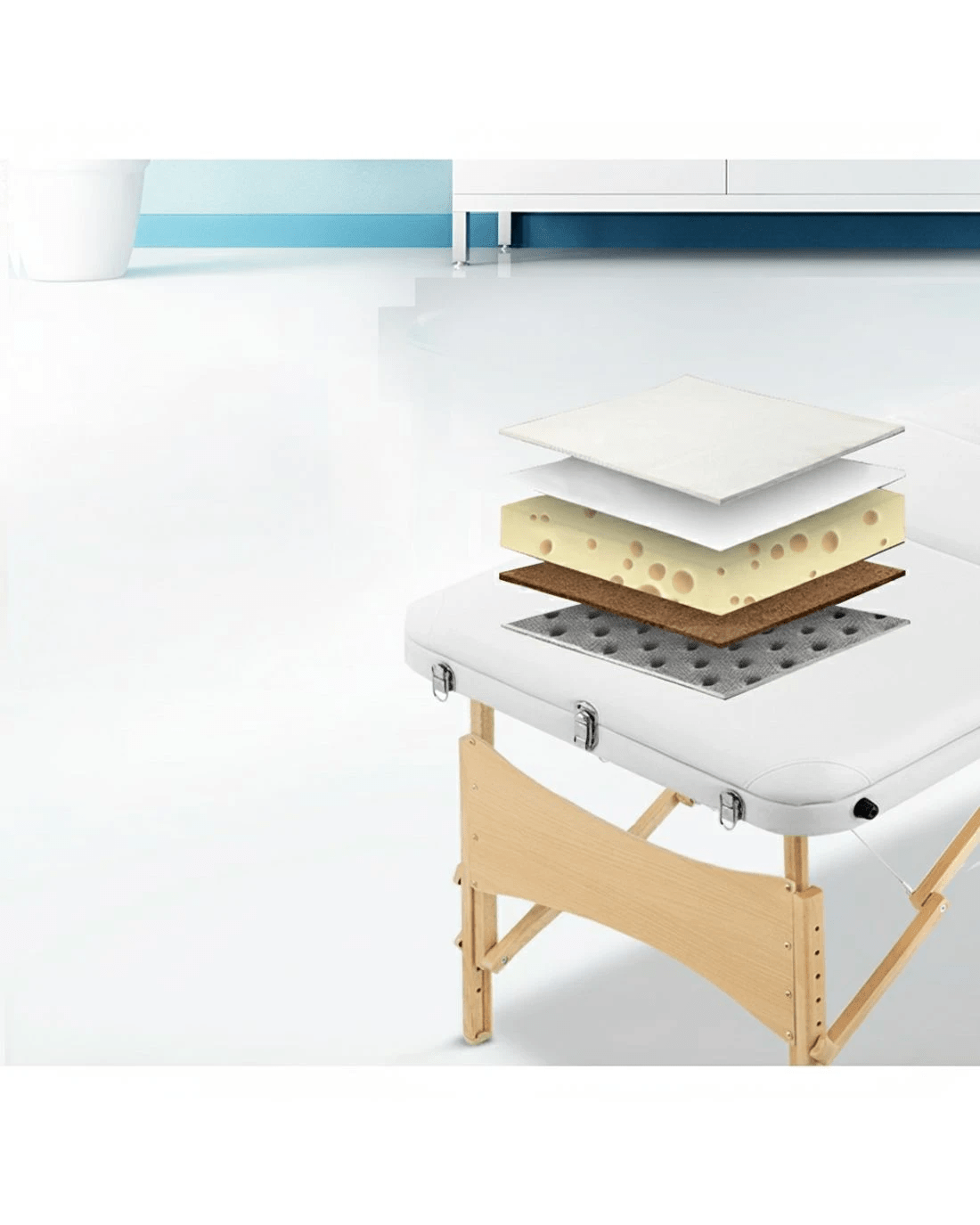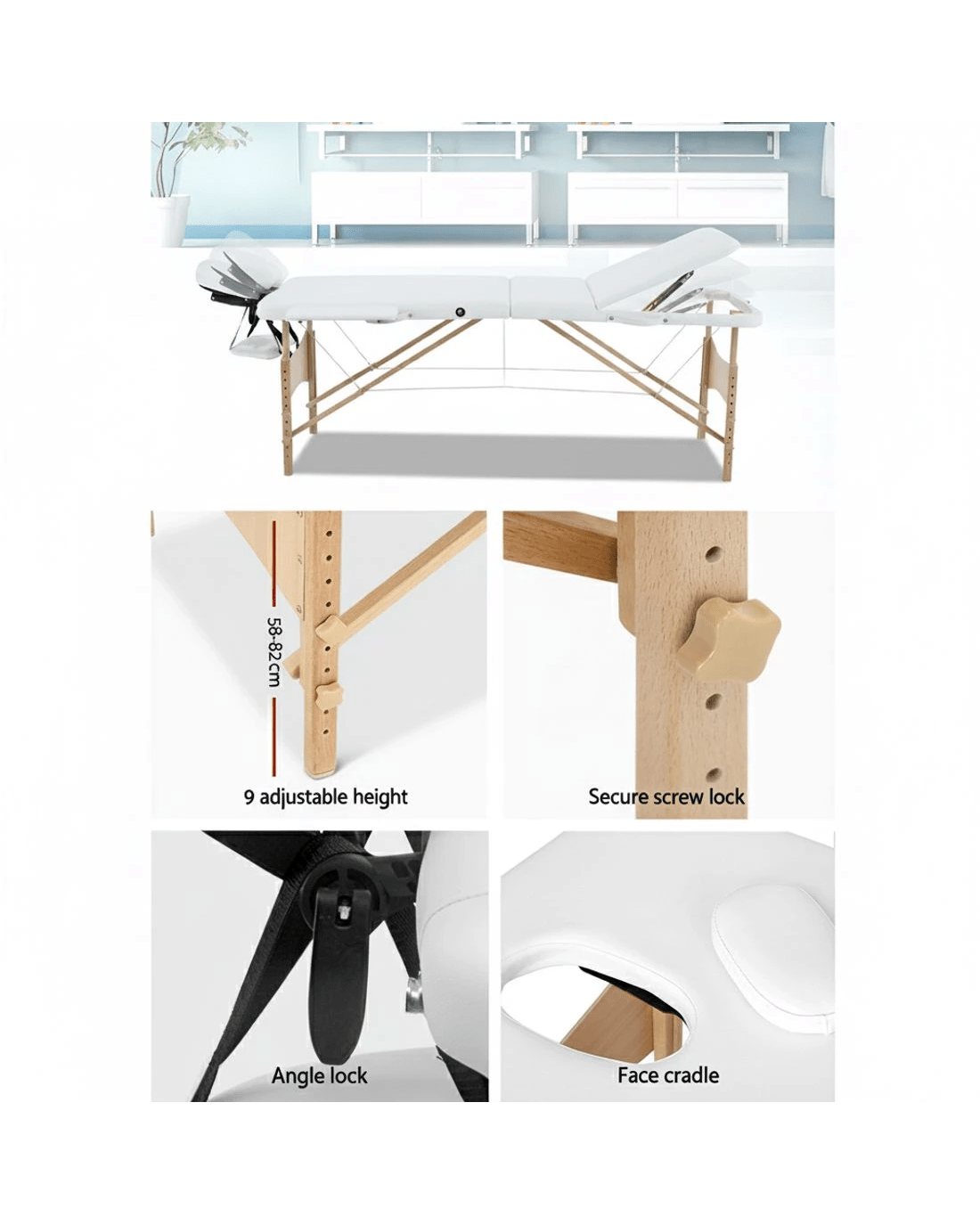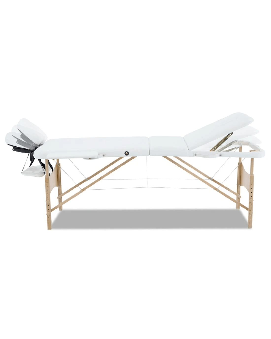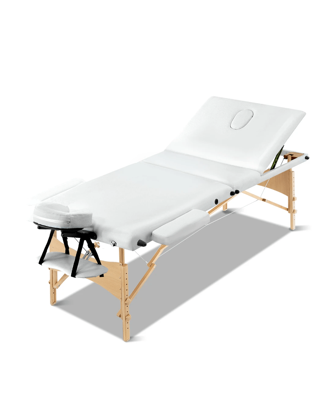 Sold by Aisle SixZenses Massage Table 70cm Portable 3 Fold Wooden Beauty Bed - White