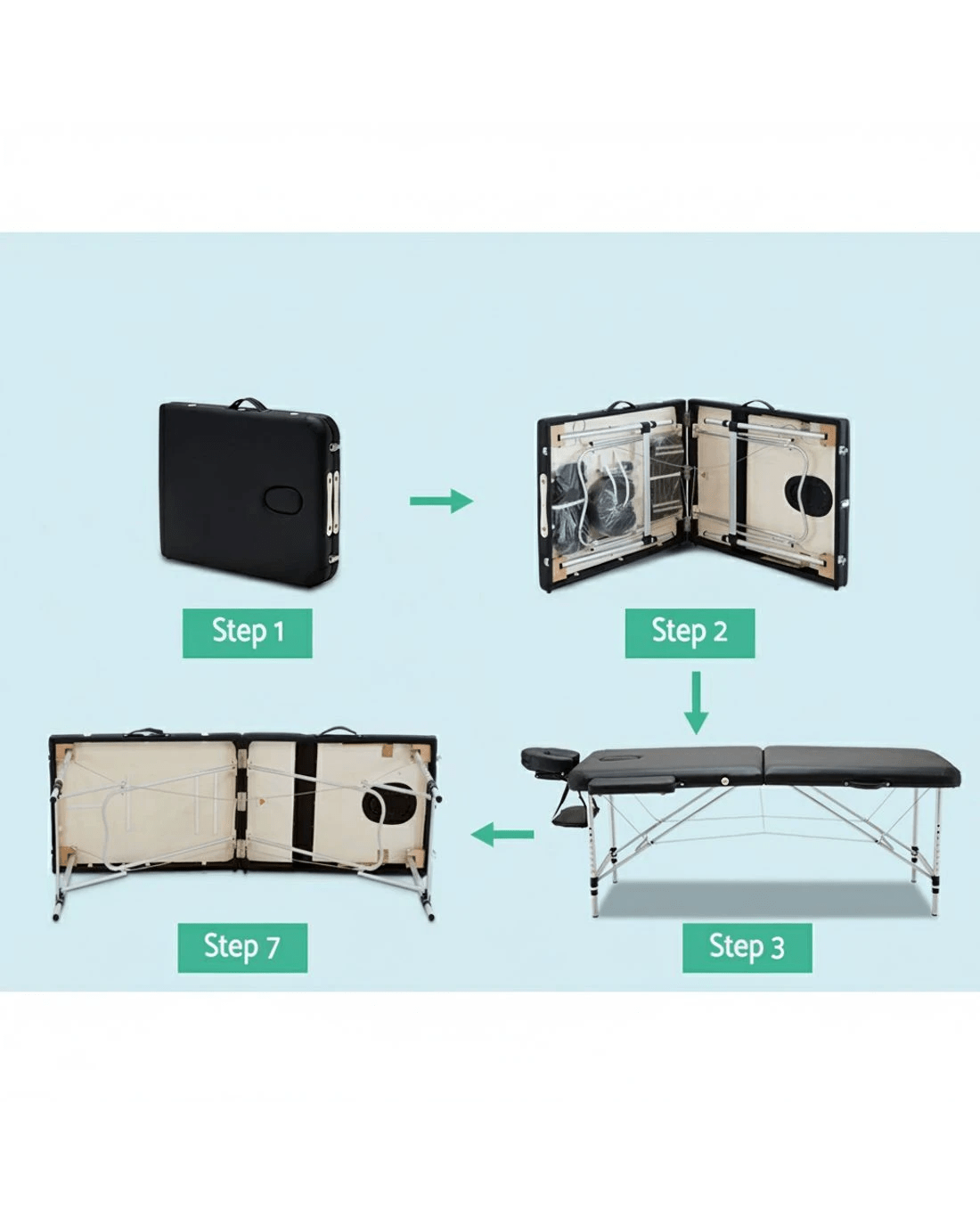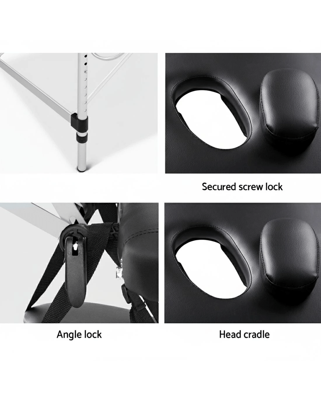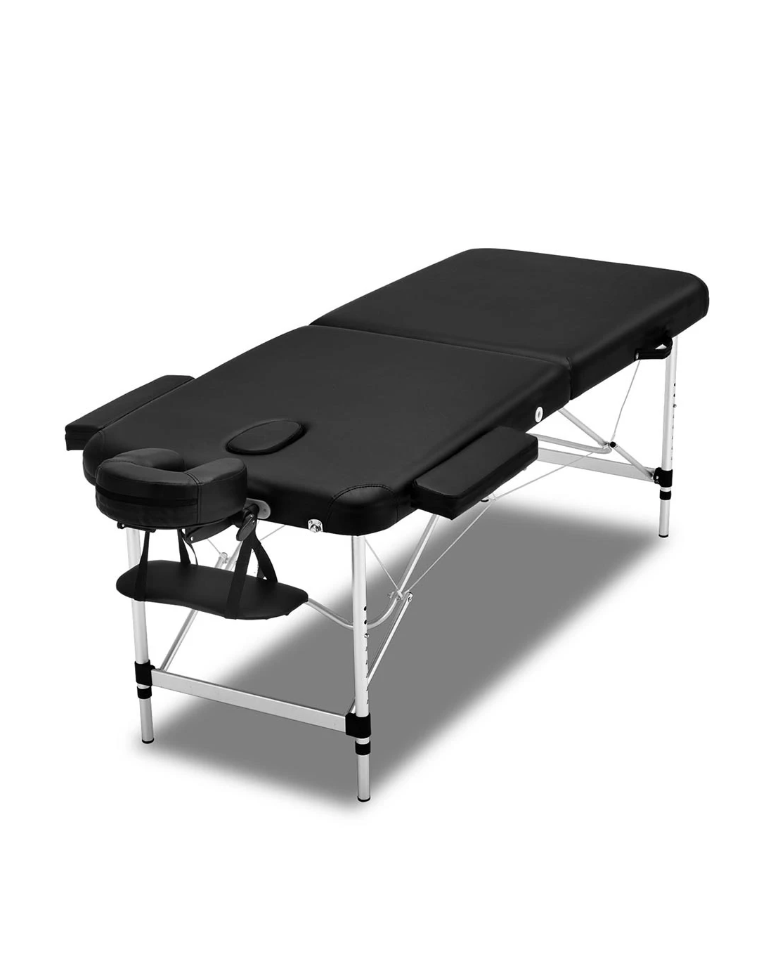 Zenses Massage Table 75cm Portable 2 Fold Aluminium Beauty Bed - Black