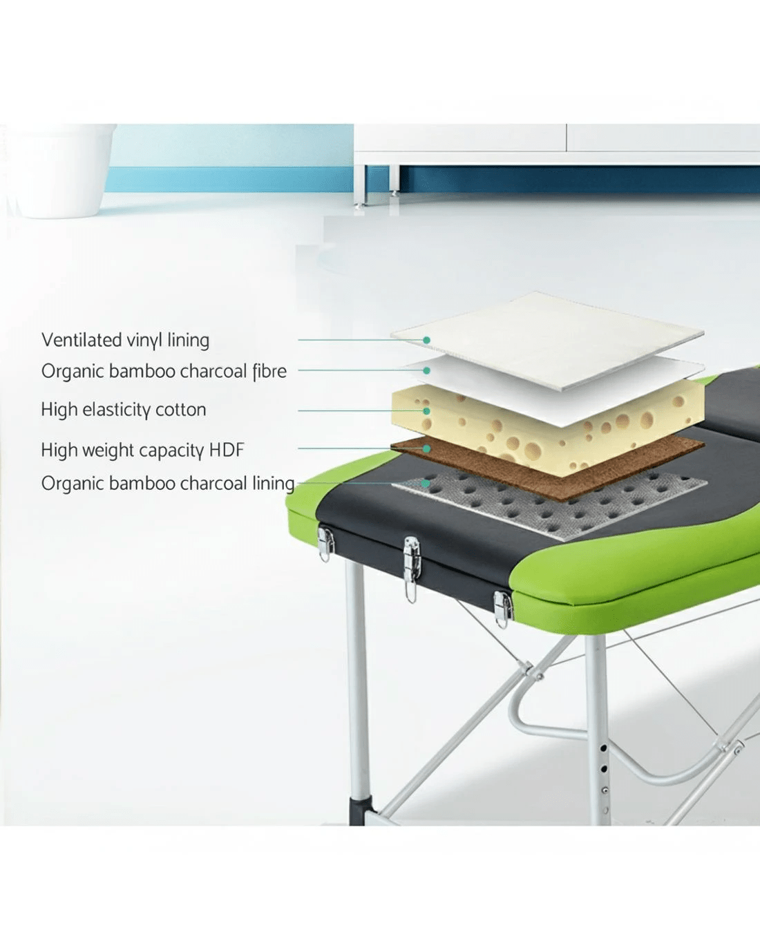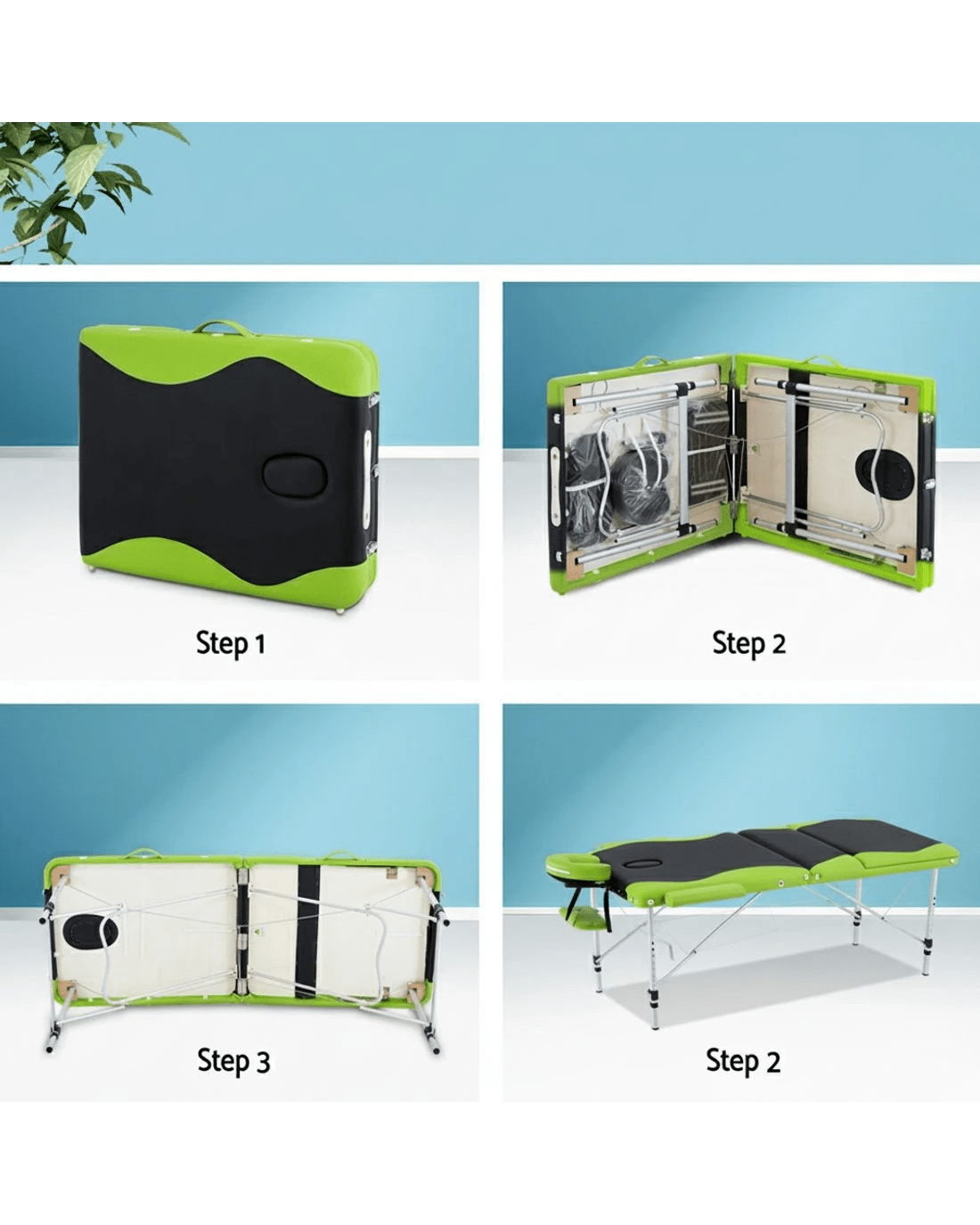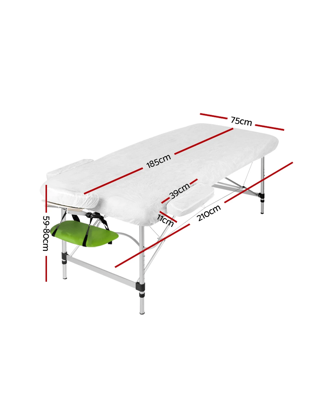 Zenses Massage Table 75cm Portable 3 Fold Aluminium Beauty Bed Green - Multi