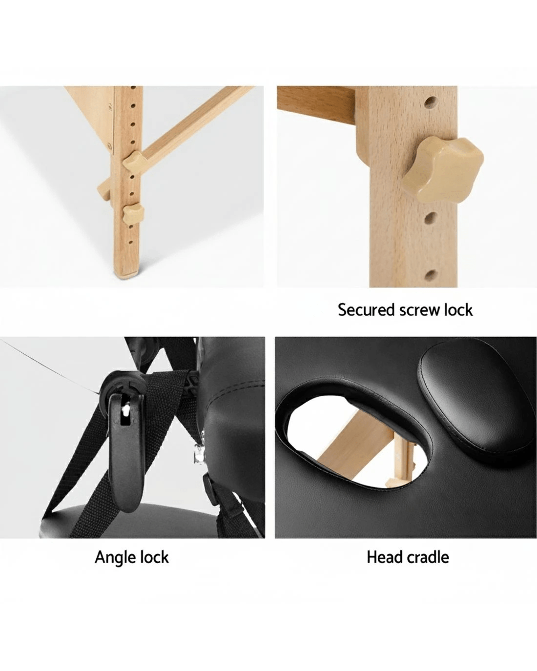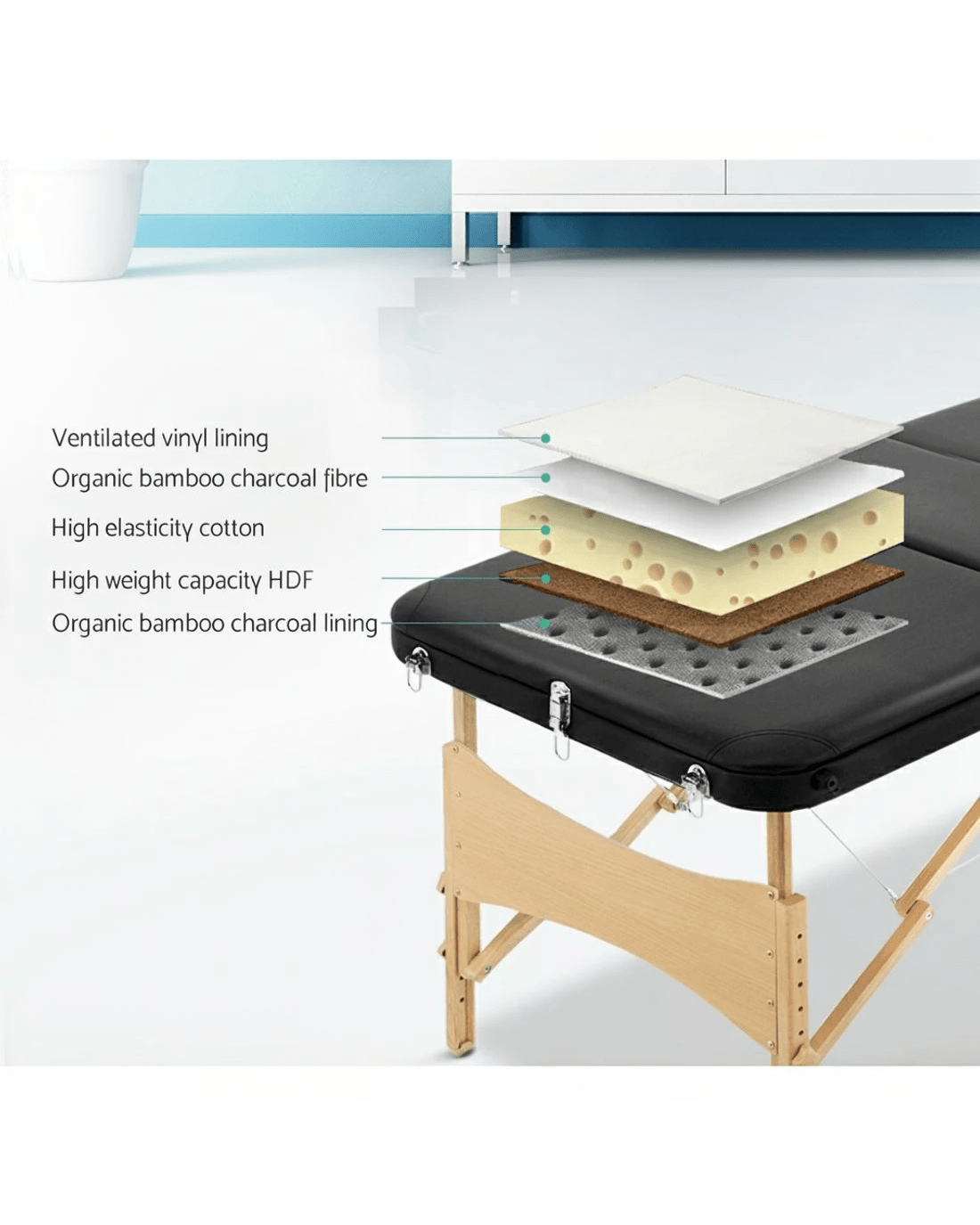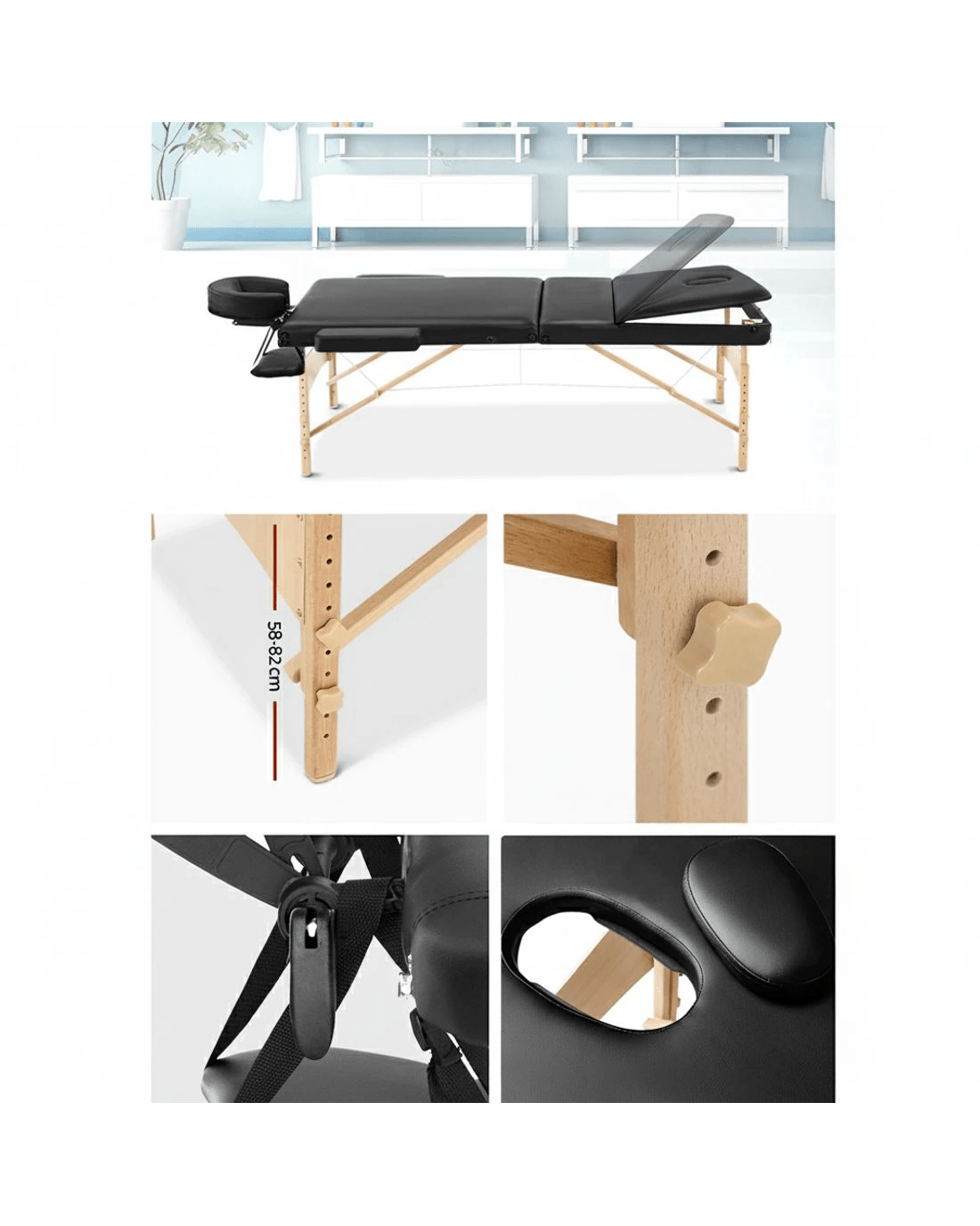 Sold by Aisle SixZenses Massage Table 75cm Portable 3 Fold Wooden Beauty Bed - Black