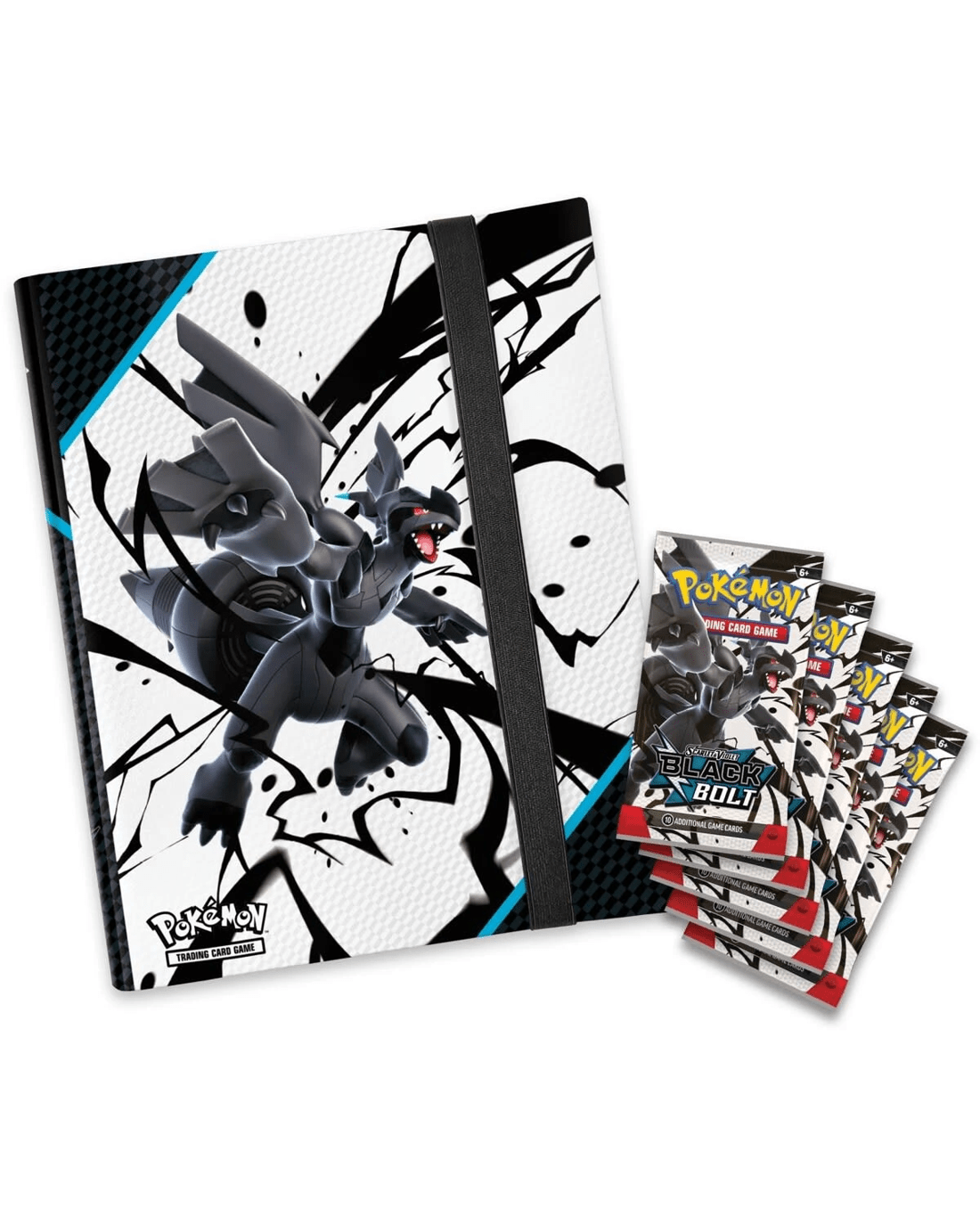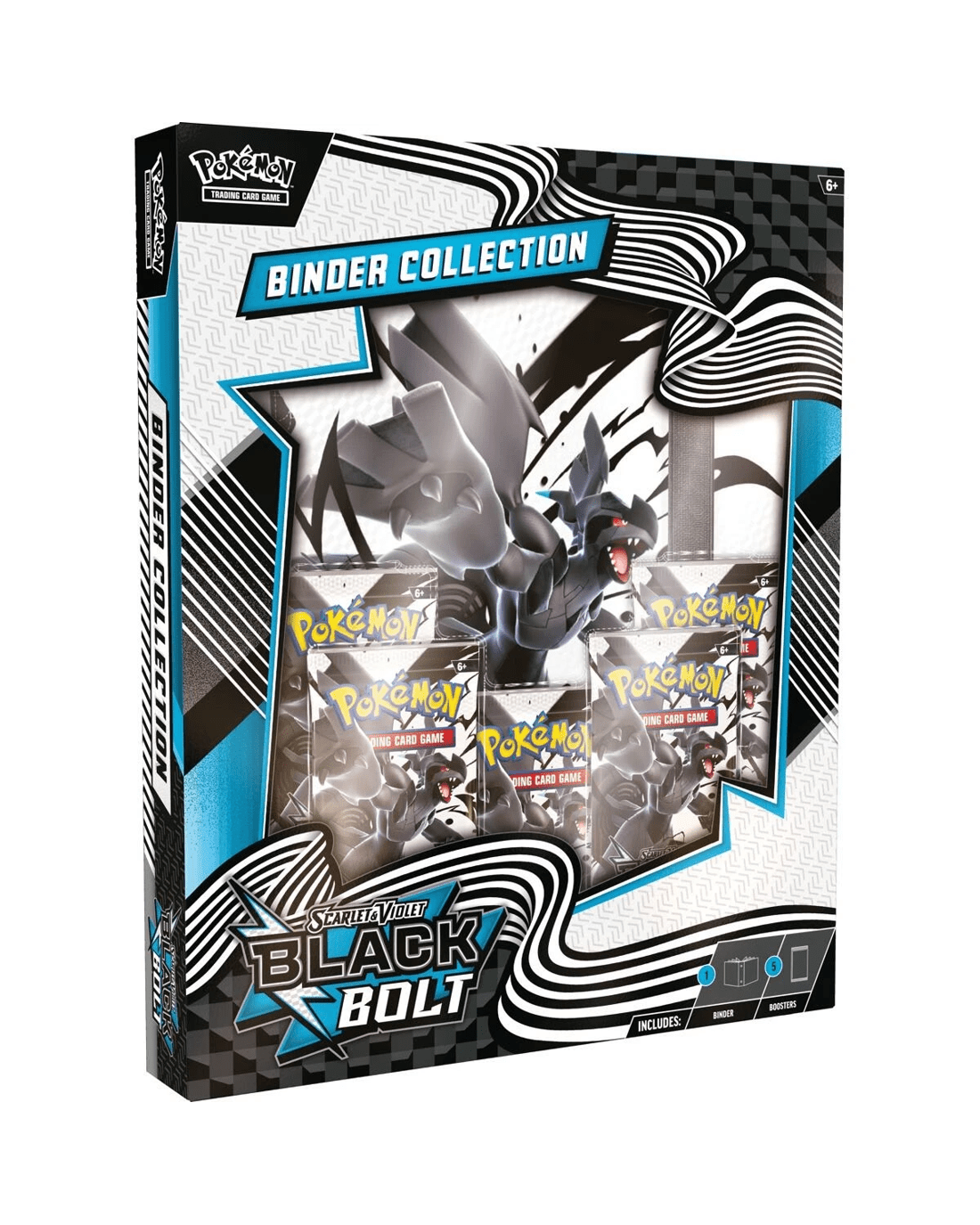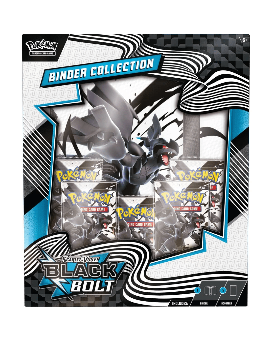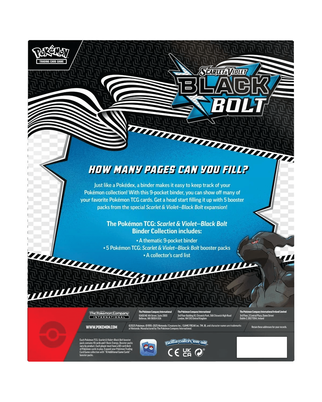 • Pokemon TCG: Scarlet and Violet - Black Bolt Binder Collection includes 1 x thematic 9-pocket binder, 5 x Pokemon TCG: Scarlet & Violet - Black Bolt booster packs, 1 x collector's card list Pokemon TCG: Scarlet & Violet - Black Bolt Binder Coll