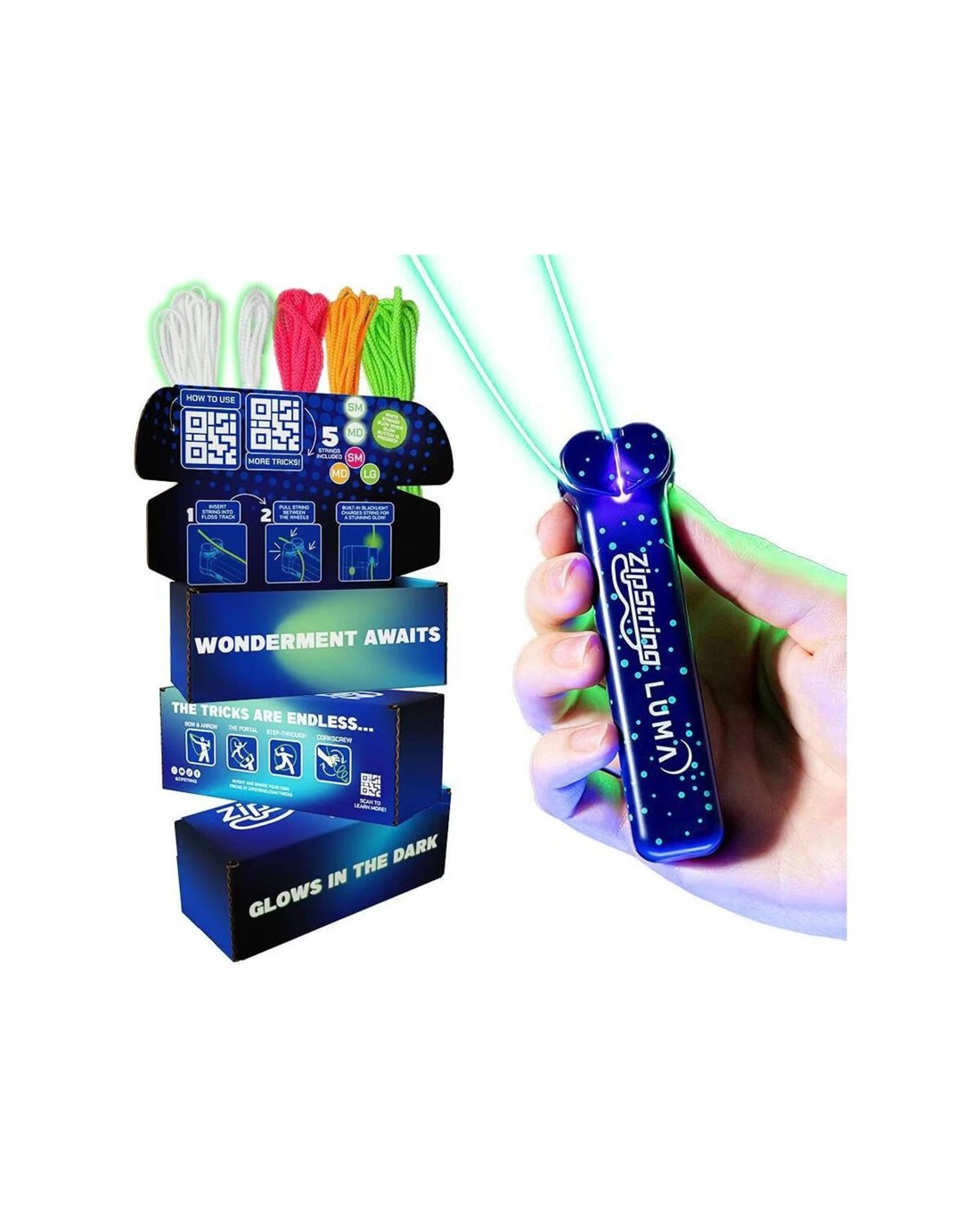 The ZipString Luma Glow in the Dark is a pocket-sized toy that turns gravity, lift, and a little bit of magic into something seriously cool! Launching a loop of string at speeds up to 56 km/h, it lets you pull off wild tricks that look like they're floating mid-air - and now it glows - so the fun doesn't stop when the lights go out! To play, just thread the string through the wheels, press the button, and get ready to step through, loop around, or invent a trick no one's seen before. There's a second button to light up the glow strings, so your moves really pop in the dark! It comes with five different strings in various lengths, including two that glow for nighttime action. It fits in your pocket, charges with a USB-C cable, and runs for over four hours on a full charge! Ages 8 +