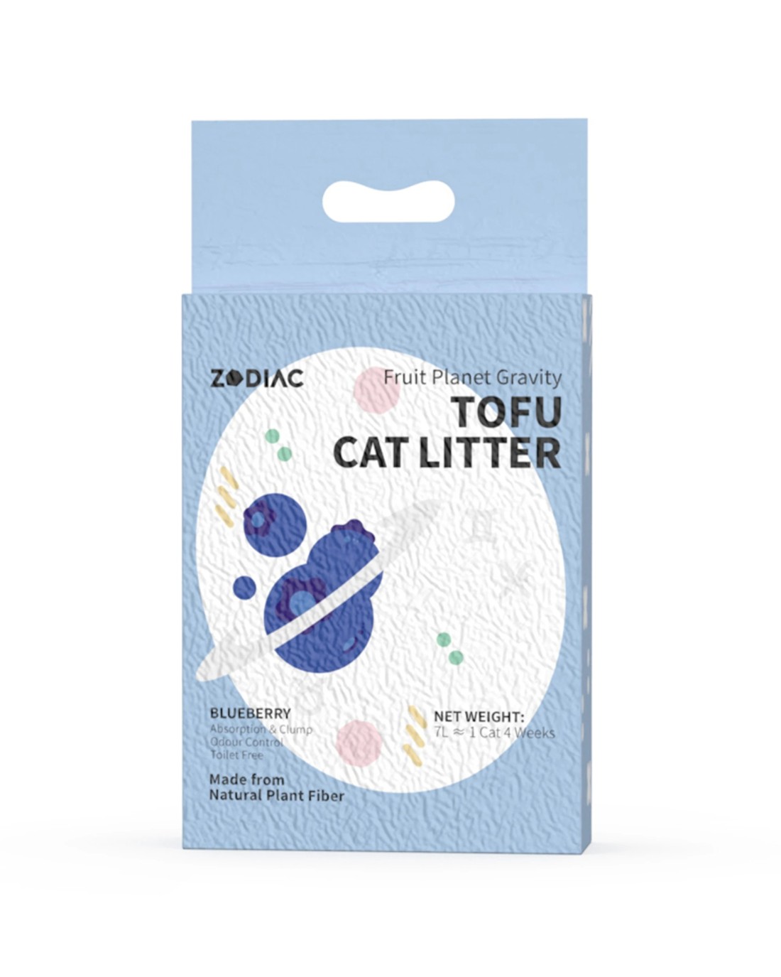 The Zodiac 7L/2.5kg Fruity Tofu Soy Pulp Cat Litter - Blueberry is designed for providing a safe, natural, and effective solution for your cat's hygiene needs. Made from all-natural ingredients, it offers a chemical-free, environmentally friendly option that is gentle on paws and easy to clean.
