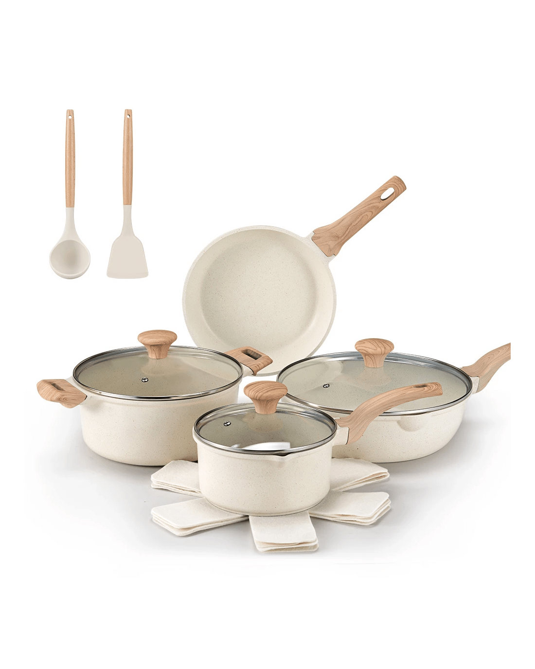 From Busy Weeknights to Sunday Feasts-Cook with Confidence, Clean with Ease. Whether you are flipping pancakes for a sleepy morning breakfast or simmering a rich stew for family dinner, this nonstick cookware set is designed to make every meal feel effortless. Upgrade your everyday cooking with this thoughtfully designed 13-piece nonstick cookware set. Featuring a granite coating that is free from PFOA, PFOS, and BPA, it provides safer, healthier cooking without sticking or scratching-perfect for busy households and those who prioritize wellness. The magnetic stainless steel base ensures compatibility with all stovetops, including induction, and the extended bottom design promotes fast, even heat distribution for consistent, delicious results every time. Lightweight yet durable thanks to the premium die-cast aluminum construction, this set combines high performance, ergonomic comfort, and modern style-making it your new kitchen essential for effortless cooking and easy cleanup.