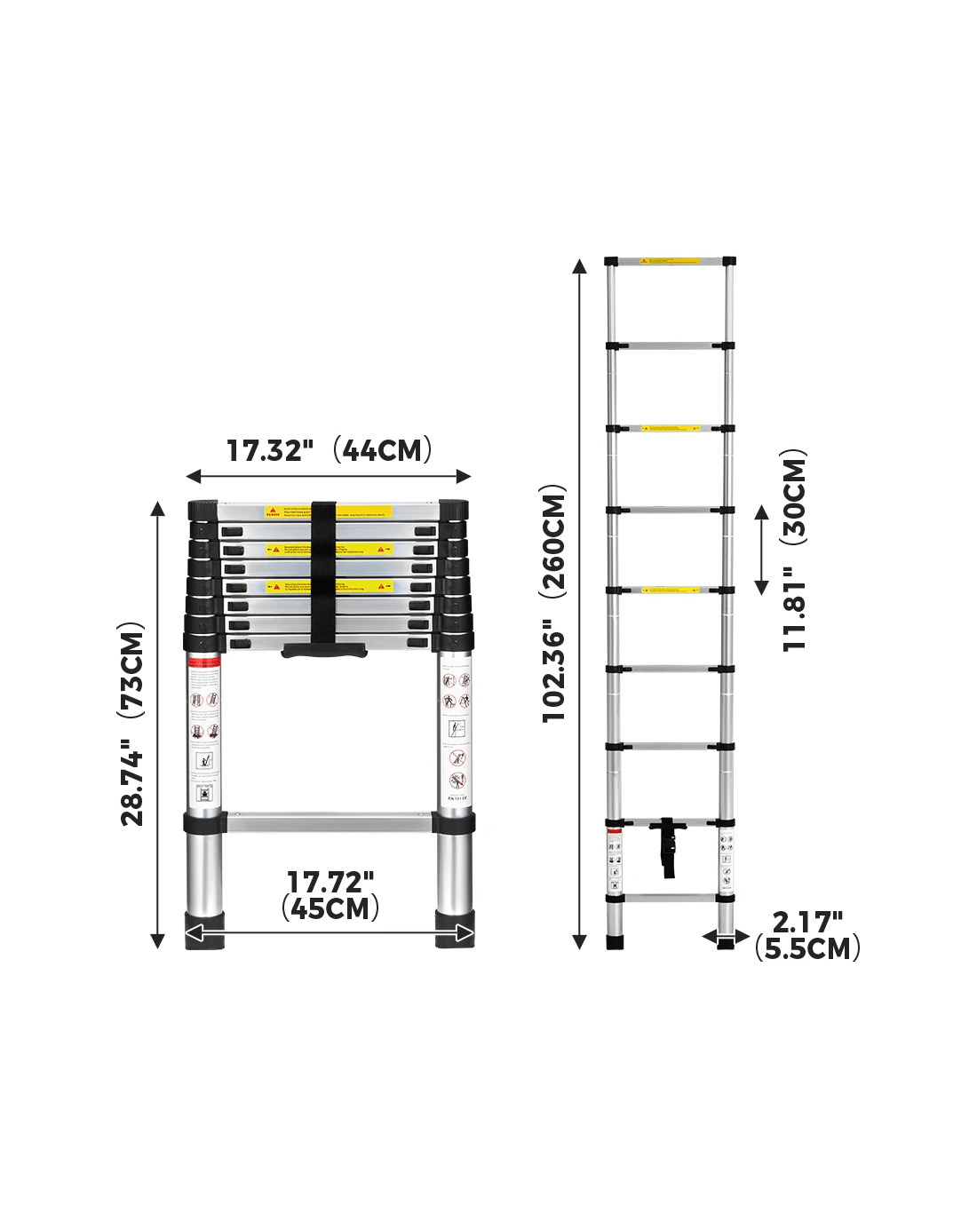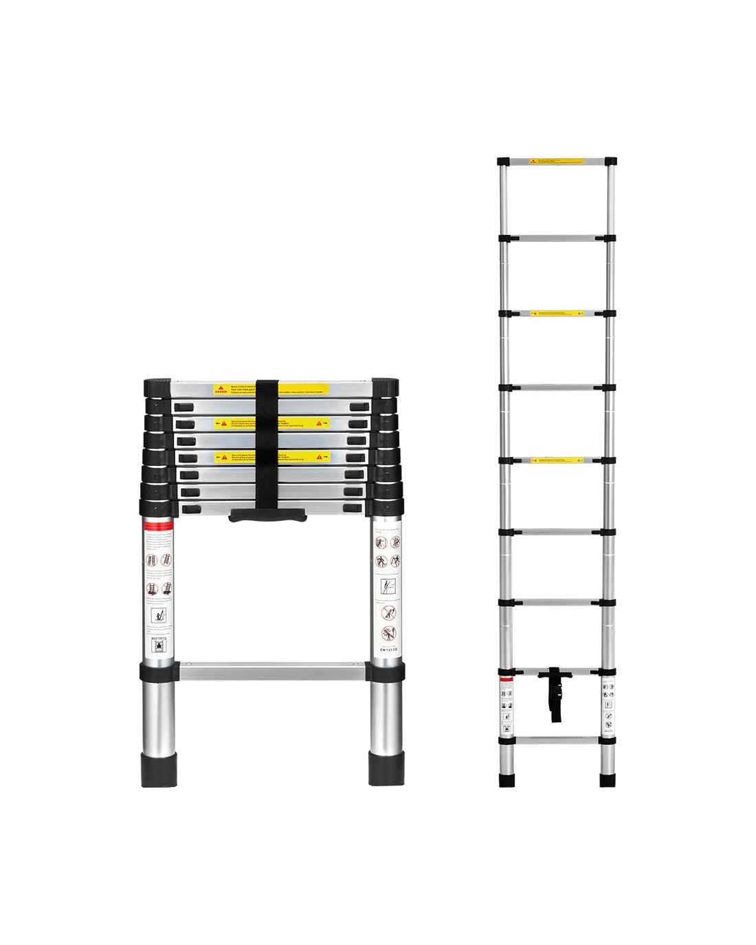 ZUNI 2.6M Telescopic Aluminium Ladder 150kg Load Height Locking Extension Step - Multi