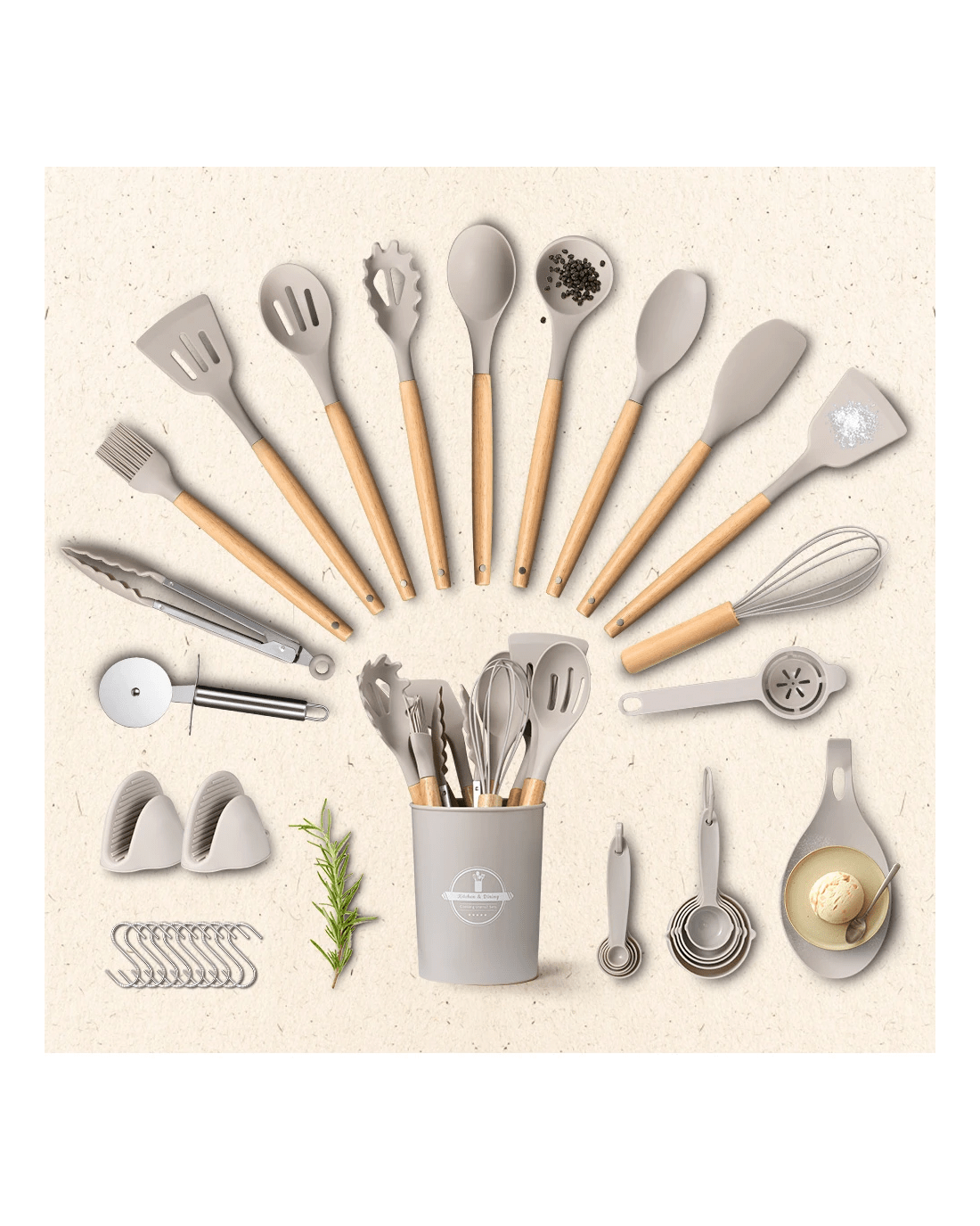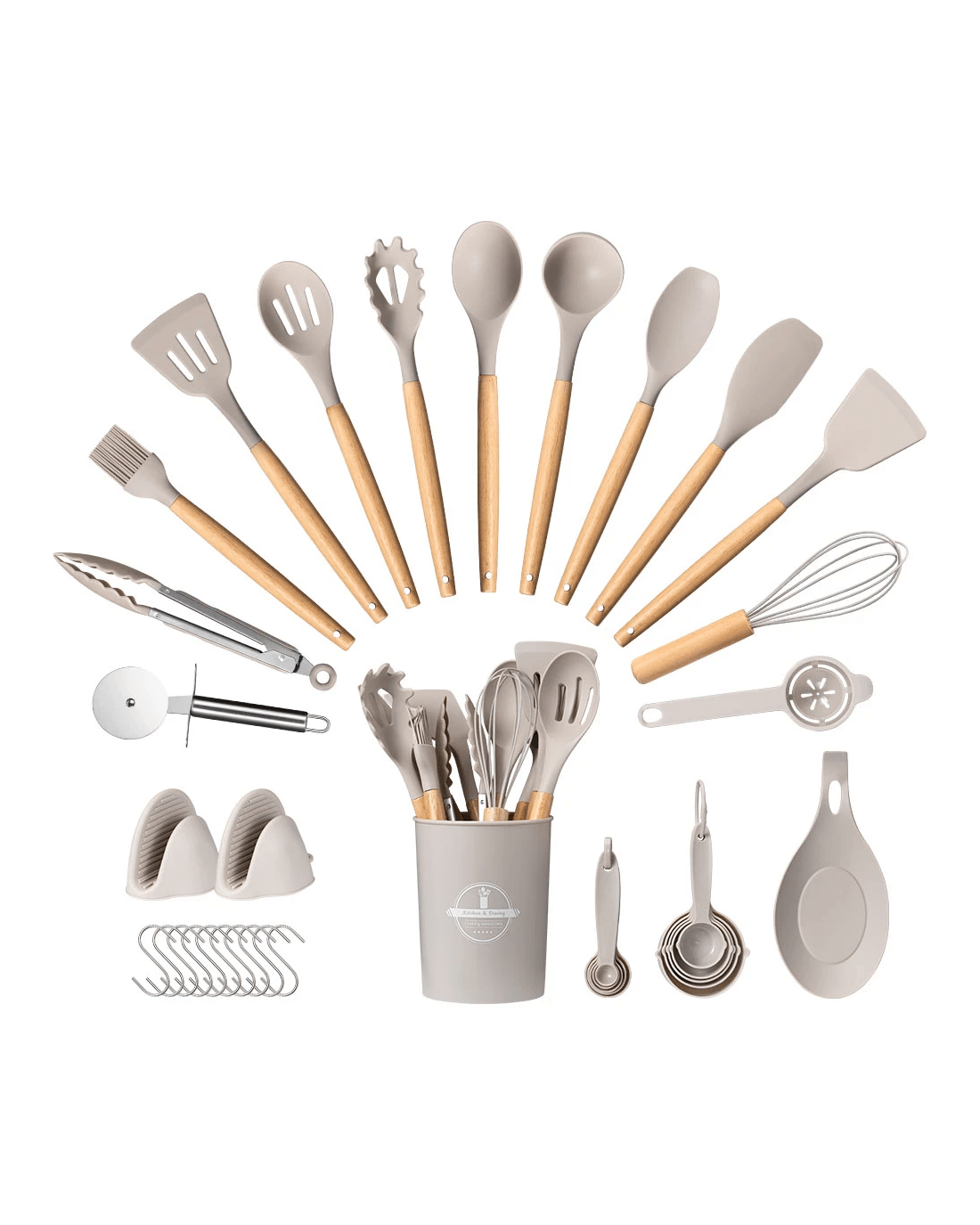 Sold by Kamprad's Oikos 1943ZUNI 37PCS Silicone Cooking Utensils Set Heat Resistant Kitchen Cookware - Grey