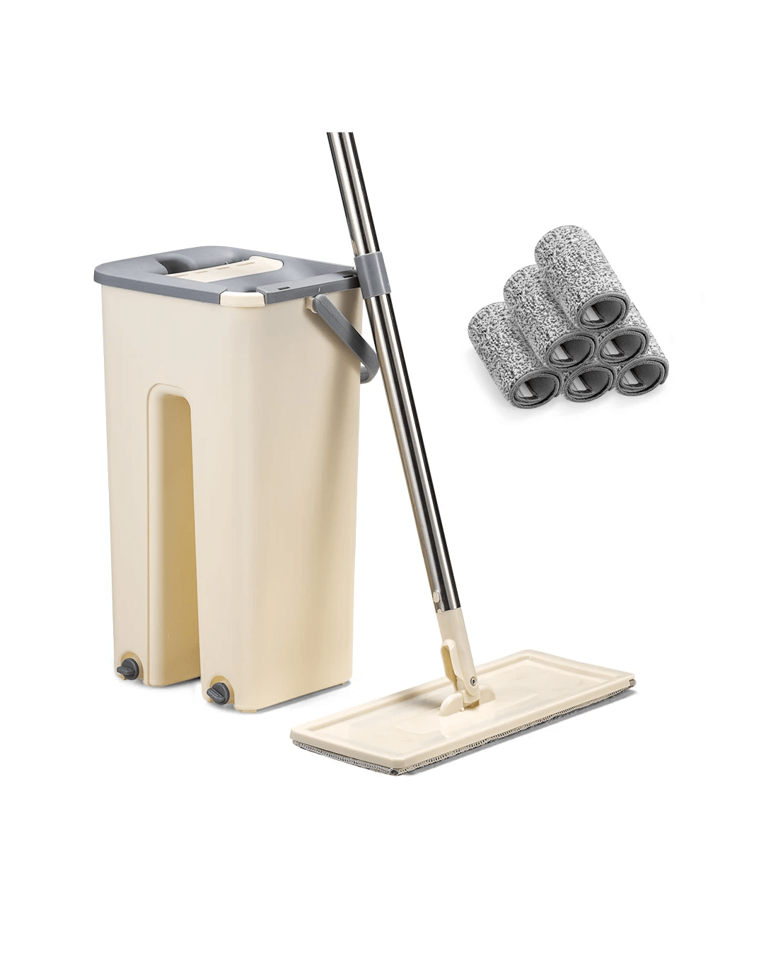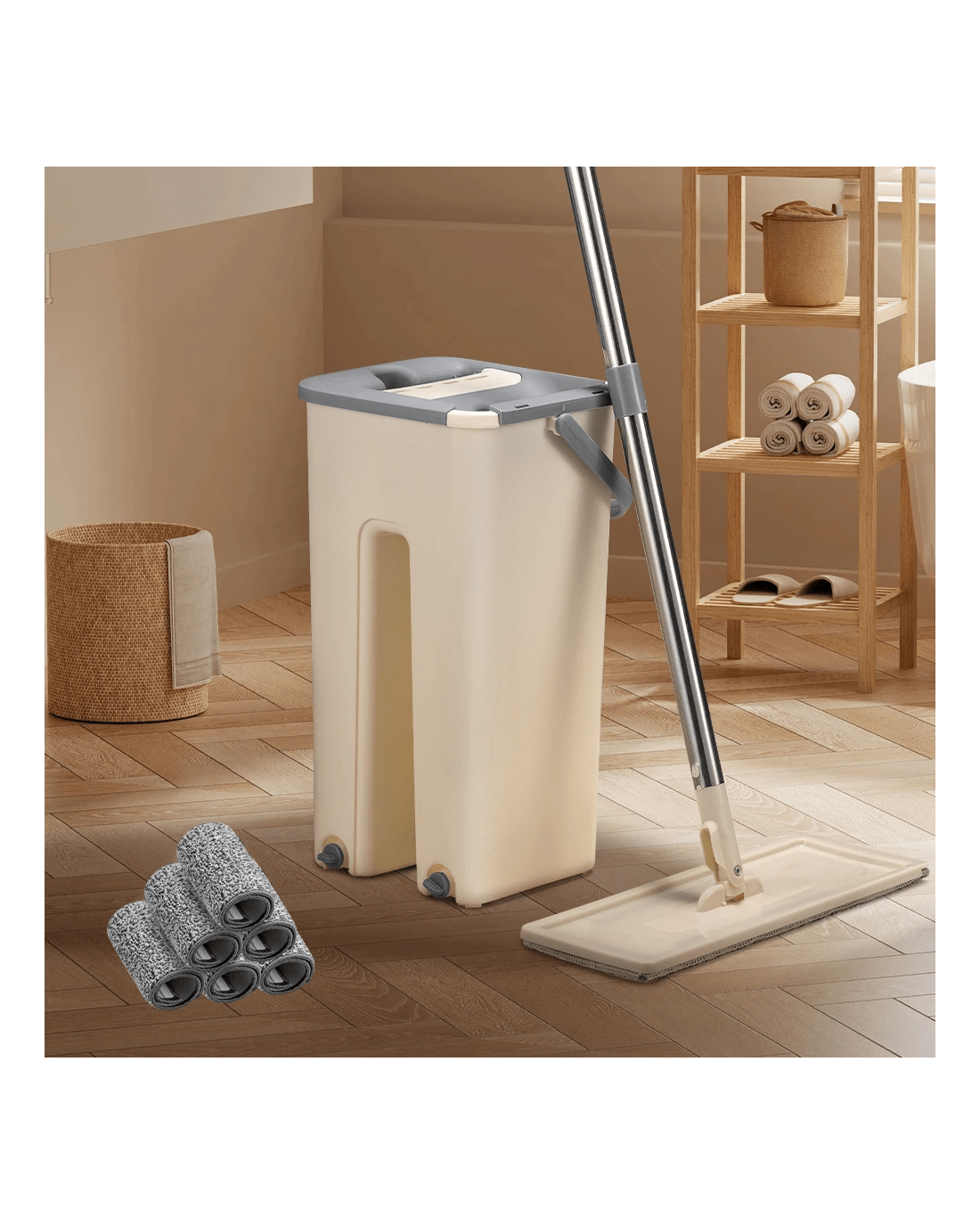 Mopping can feel like a chore-dragging out the mop, wringing it endlessly, and scrubbing stubborn dirt. What if you could skip all that? With our ZUNI flat mop and bucket set, cleaning and drying are done for you-effortless, fast, and mess-free. No hand washing, no wringing, no back-breaking work! Dirt, pet hair, spills? No problem! The microfiber head grabs debris effortlessly, while its powerful absorbency soaks up messes like coffee or sauce with ease. And when your mop gets dirty? Forget about hand-washing and wringing! Our dual-chamber bucket scrapes clean on one side, squeezes dry on the other-quick, easy, and mess-free! Whether cleaning around furniture or deep into hard-to-reach places, the 360 degrees rotating head glides smoothly, leaving no spot behind. The tough stainless steel handle adjusts to your perfect height, while smart features like dual drain plugs, a 30 degrees rebound, and a large mop head make it all easier. Cleaning has never been this fast, efficient, or convenient!