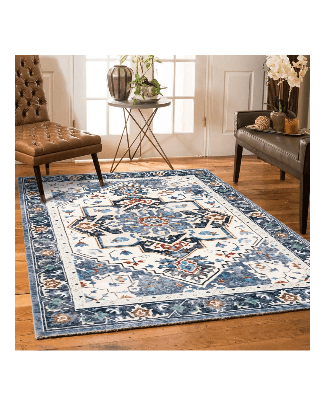 You've been thoughtfully designing your space-choosing furniture, artwork, and lighting that speak to your style. Now, you are ready for that last step, the one that pulls everything together and adds that finishing touch. It is time to find the right rug. With a plush polyester surface and TPR base, the ZUNI area rug offers cozy comfort and slip-resistant support from the first steps of the day to the last bursts of play. Made from non-toxic, odorless materials, it creates a safe, healthy space for your whole family. Its non-slip TPR backing ensures a solid hold on hard floors, enhancing safety with every step. Thanks to the low 5mm pile, the rug resists dust, pollen, and pet hair buildup-ideal for allergy-sensitive homes-while still allowing doors to swing freely. Reinforced stitched edges keep the rug flat, preventing curling or fraying even after washes. Warm boho tones infuse your space with comfort, while the foldable design offers simple, compact storage when needed.