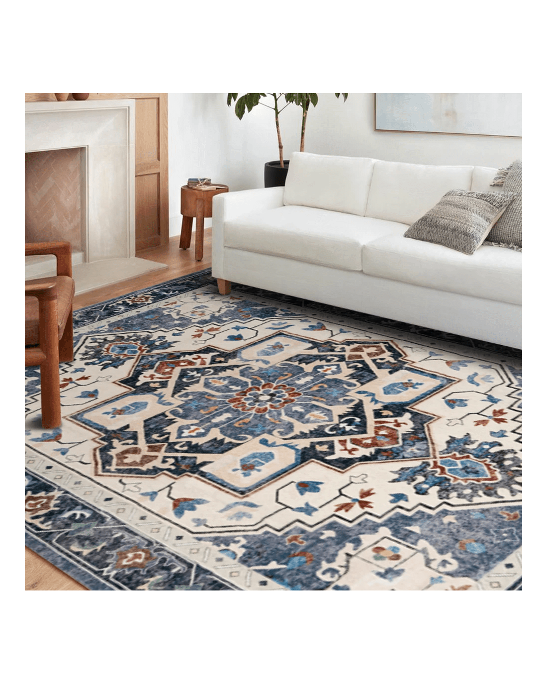 You've been thoughtfully designing your space-choosing furniture, artwork, and lighting that speak to your style. Now, you are ready for that last step, the one that pulls everything together and adds that finishing touch. It is time to find the right rug. With a plush polyester surface and TPR base, the ZUNI area rug offers cozy comfort and slip-resistant support from the first steps of the day to the last bursts of play. Made from non-toxic, odorless materials, it creates a safe, healthy space for your whole family. Its non-slip TPR backing ensures a solid hold on hard floors, enhancing safety with every step. Thanks to the low 5mm pile, the rug resists dust, pollen, and pet hair buildup-ideal for allergy-sensitive homes-while still allowing doors to swing freely. Reinforced stitched edges keep the rug flat, preventing curling or fraying even after washes. Warm boho tones infuse your space with comfort, while the foldable design offers simple, compact storage when needed.