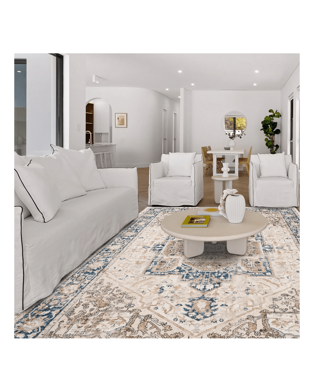 You've been thoughtfully designing your space-choosing furniture, artwork, and lighting that speak to your style. Now, you are ready for that last step, the one that pulls everything together and adds that finishing touch. It is time to find the right rug. With a plush polyester surface and TPR base, the ZUNI area rug offers cozy comfort and slip-resistant support from the first steps of the day to the last bursts of play. Made from non-toxic, odorless materials, it creates a safe, healthy space for your whole family. Its non-slip TPR backing ensures a solid hold on hard floors, enhancing safety with every step. Thanks to the low 5mm pile, the rug resists dust, pollen, and pet hair buildup-ideal for allergy-sensitive homes-while still allowing doors to swing freely. Reinforced stitched edges keep the rug flat, preventing curling or fraying even after washes. Warm boho tones infuse your space with comfort, while the foldable design offers simple, compact storage when needed.
