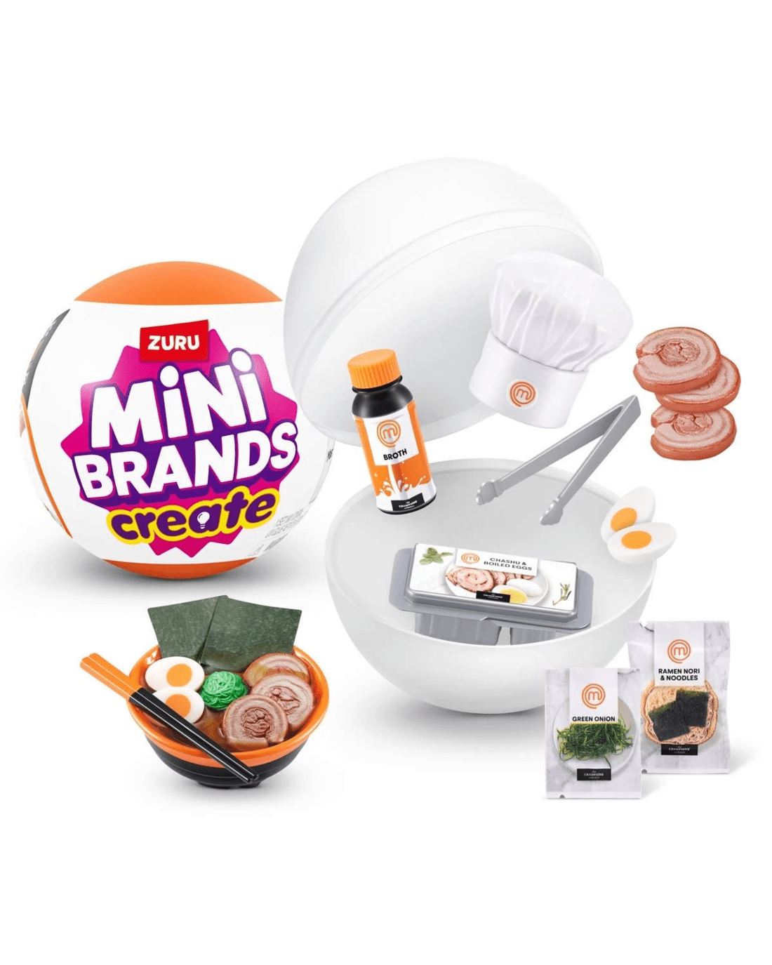 - Includes 1 x Mini Brands Create MasterChef Capsule, 1 x Mini Brands MasterChef dish to create including ingredients and accessories, 1 x UV LED toque, 1 x MasterChef recipe and 1 x collector's guide