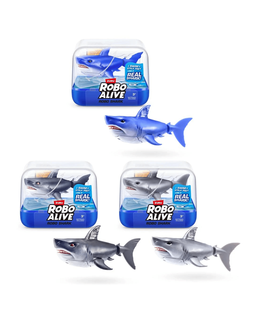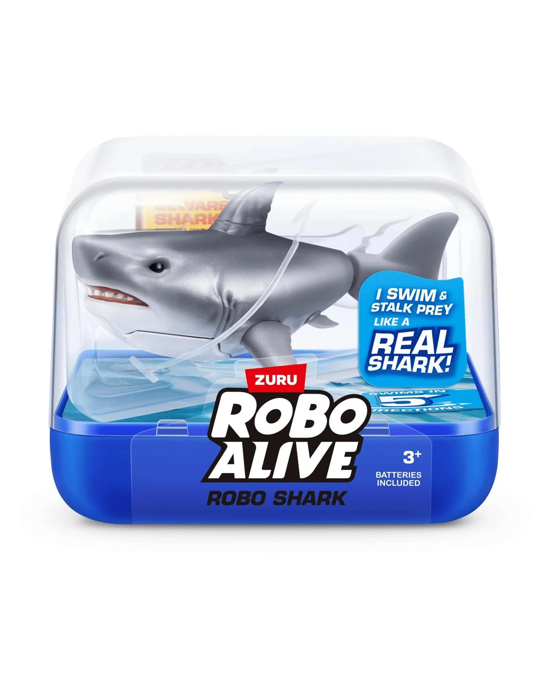 *Each sold separatelyDive into underwater adventure with the Robo Alive Water Activated Shark by Zuru, the ultimate interactive robotic pet toy for kids aged 3+, tweens and teens. Simply drop your Robo Shark into water and watch it instantly spring to life, thanks to moving parts and water-activated technology. This realistic swimming shark can swim in five directions and dive up to 6ft., turning bath time, pool play, or backyard water games into immersive fun. Designed for interactive, screen-free play, this robotic toy is perfect for role play, pretend play and silly pranks - hide it in a water jug to surprise family and friends! Collect all three unique designs to build your mini underwater world of realistic robotic sharks. Lightweight and battery-powered, this moving, interactive Robo Shark offers hours of aquatic fun, combining STEM-inspired play with active imagination. Whether indoors or outdoors, it?s more than alive - it?s Robo Alive!