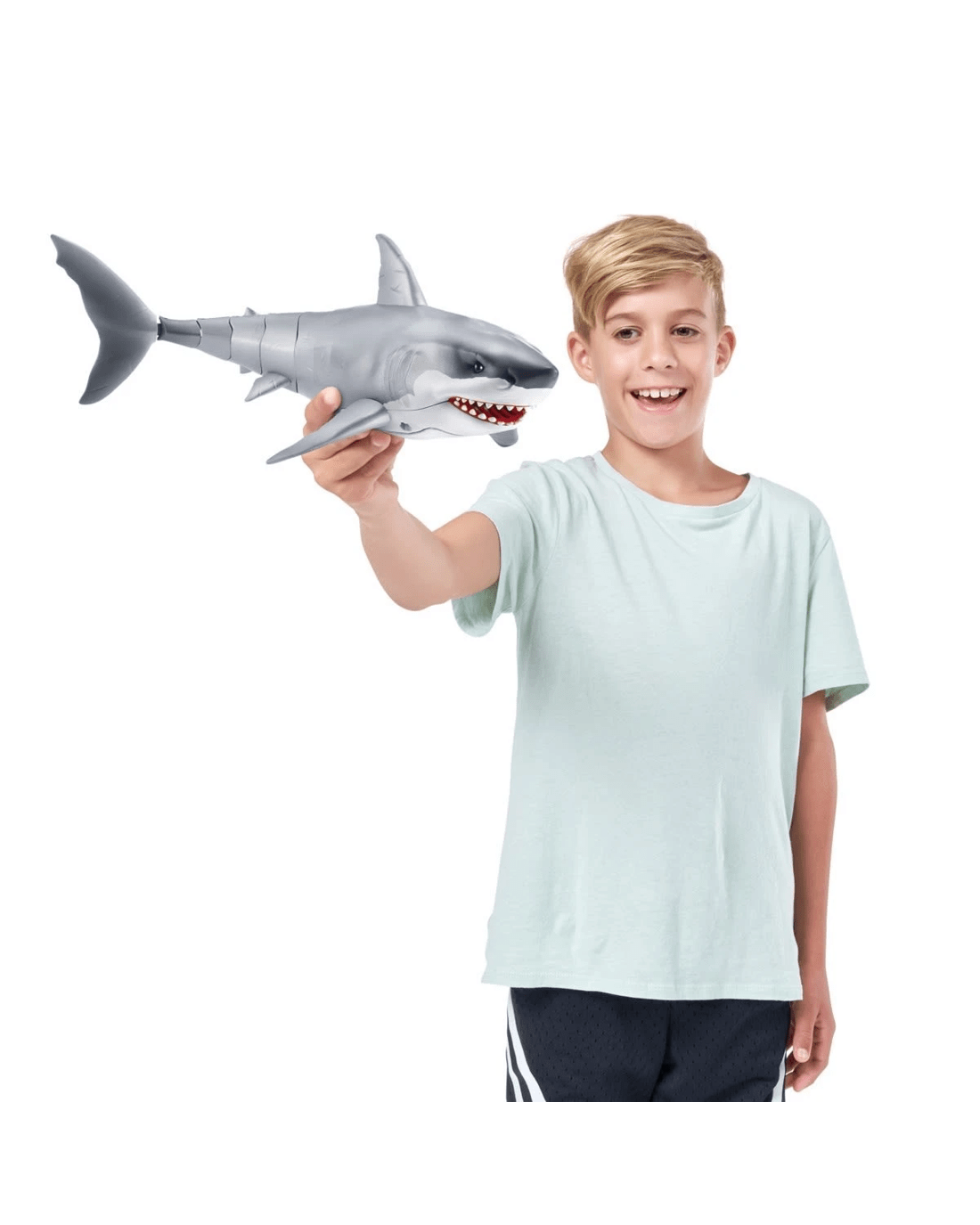 Are you game to tame the Great White Shark, or will you be its next prey? The Great White Shark comes to life in water with Zuru's advanced water-activated technology and swims just like a real-life shark. You'll have your friends and family pranked in no time. With fierce, glowing eyes and life-like movements, this shark is on the hunt!