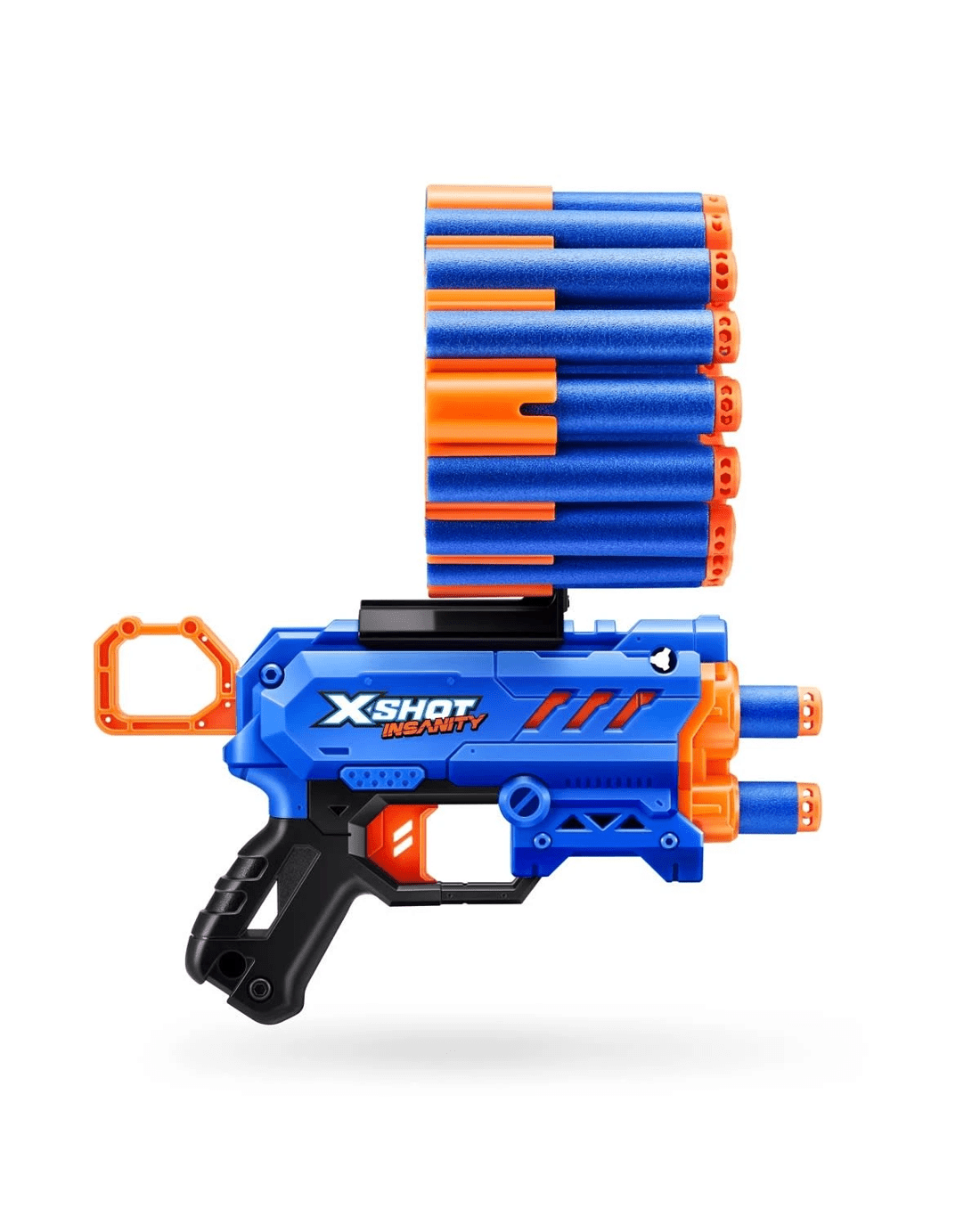 Get insane combos, extra ammo and all the action with the X-SHOT Insanity Micro Blaster! Blitz your opponents with its 24 foam dart capacity. With two Side Modular Dart Storage Units, the battle doesn't end there. An easy reload mechanism means you're always primed for action, while next-level firing power ensures you can hit opponents up to 30m / 98ft. away. Bring the latest in foam dart technology to your next blaster battle!