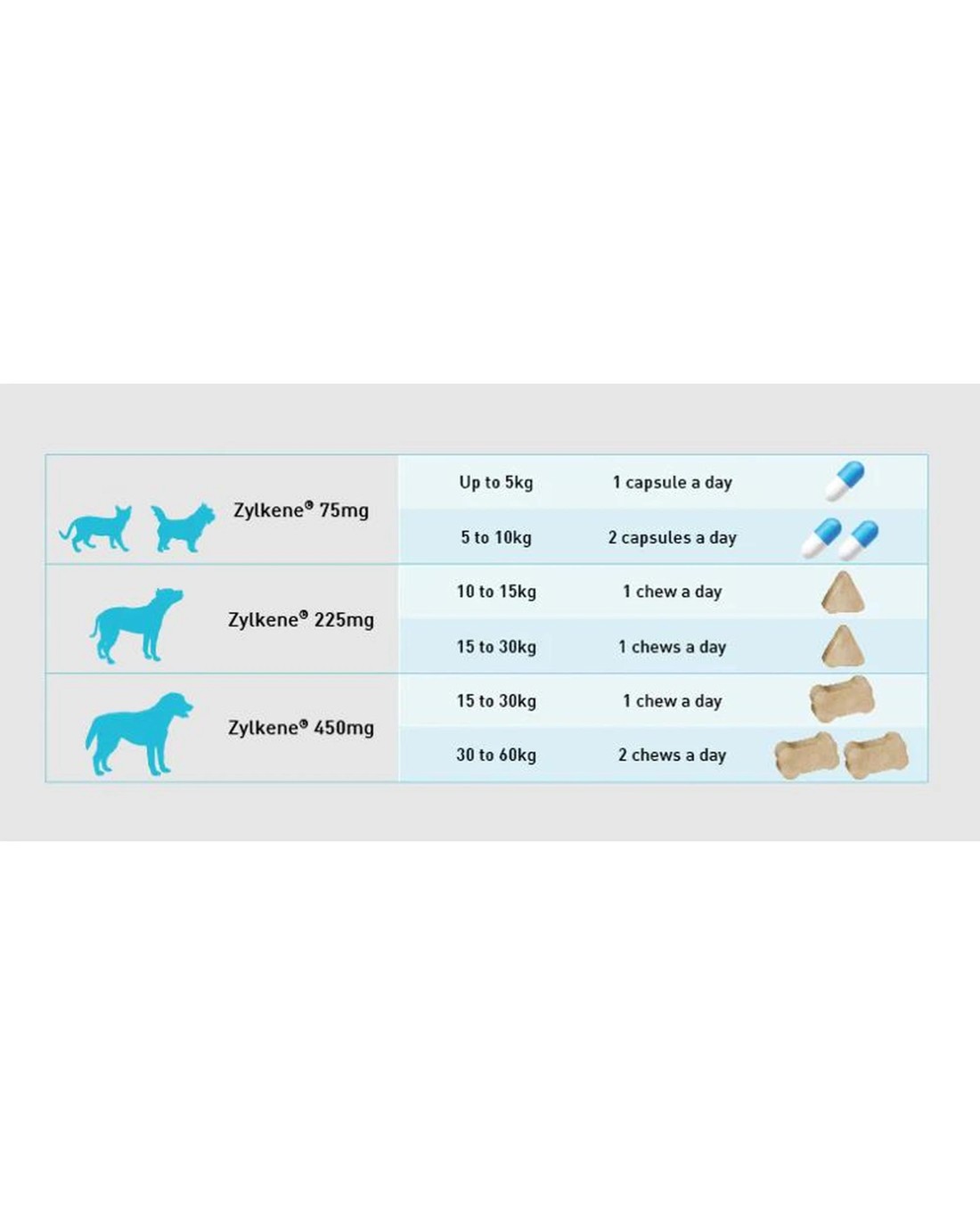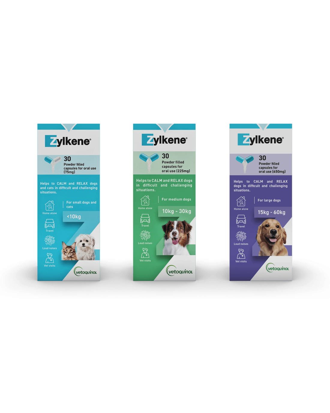 Zylkene is a complementary feed that helps cats and dogs manage stressful situations. It contains a natural product from casein, a milk protein known to promote relaxation. Palatable and easy to give, capsules can be mixed with food or administered whole. Zylkene is preservative- and lactose-free.